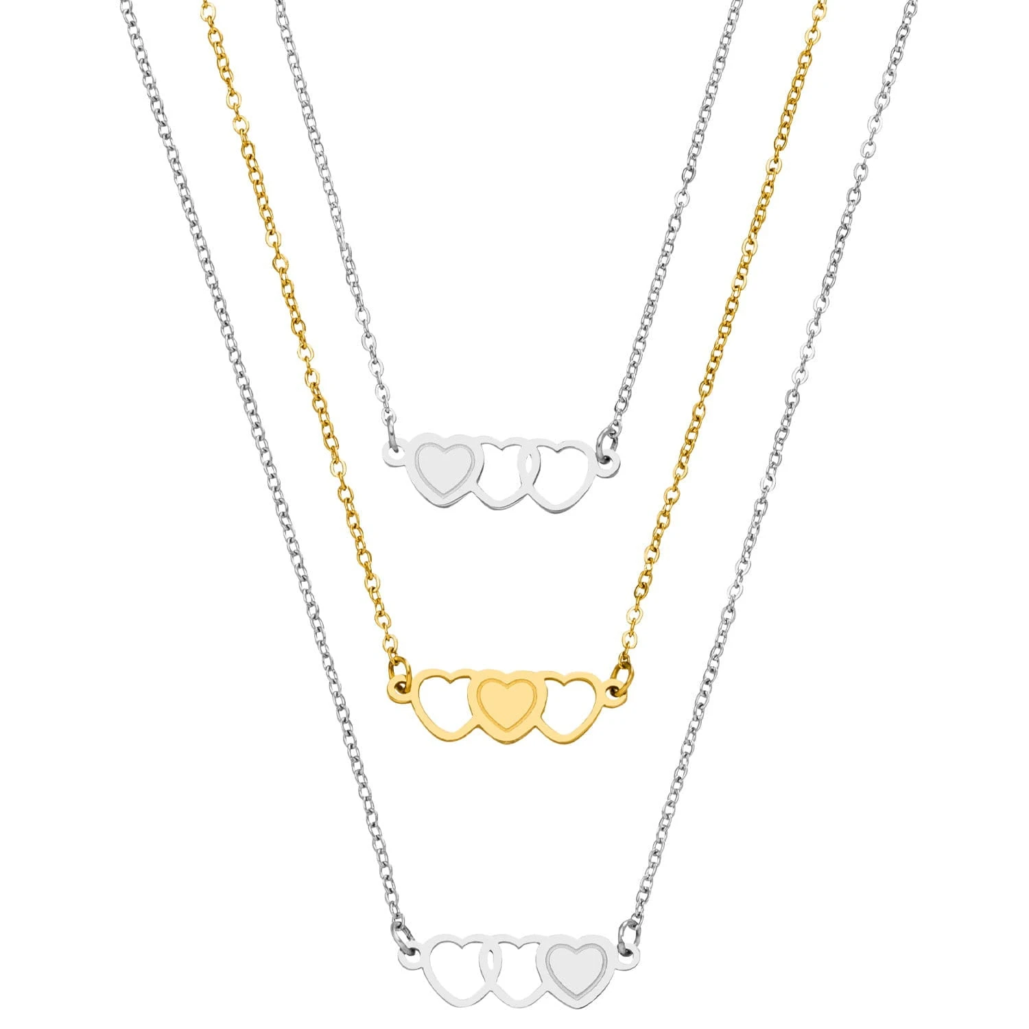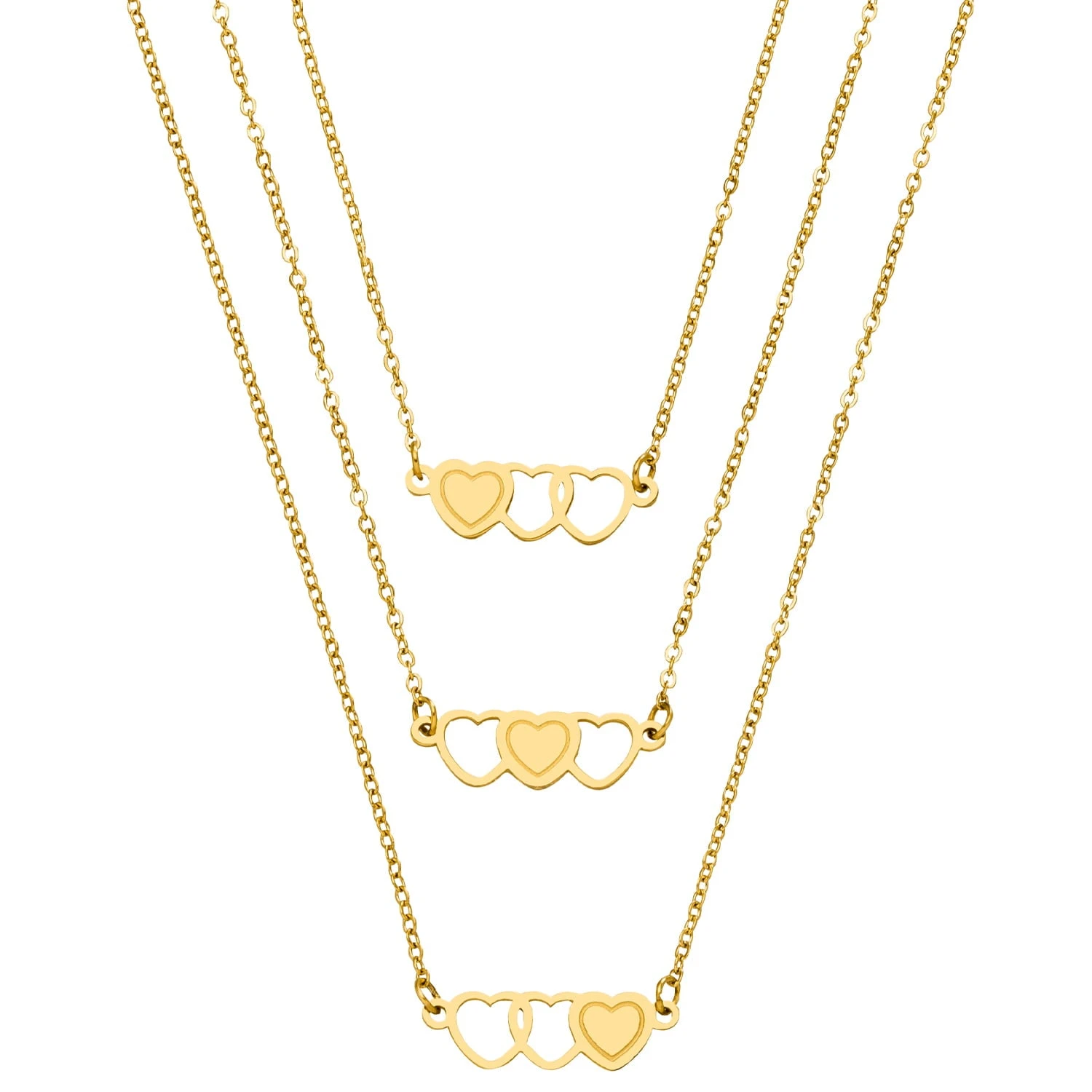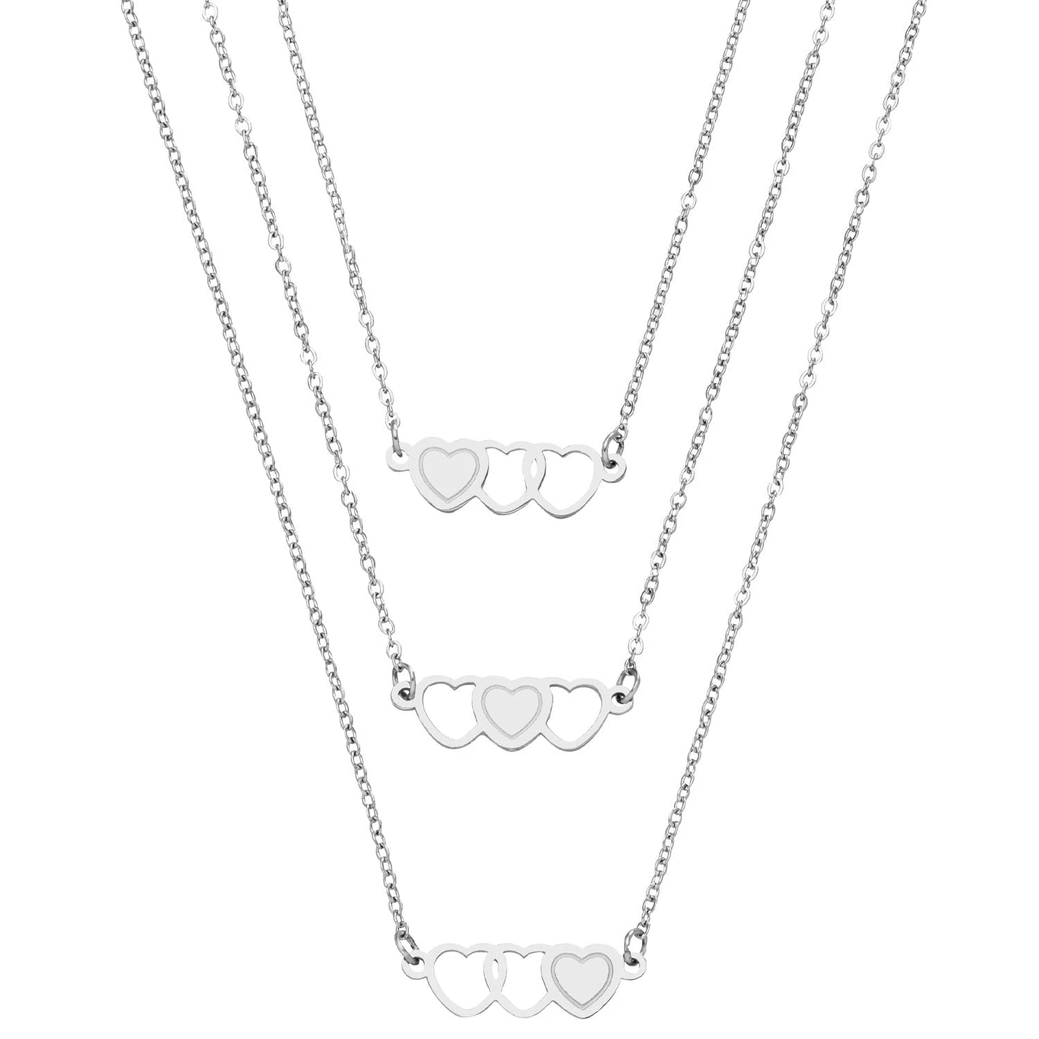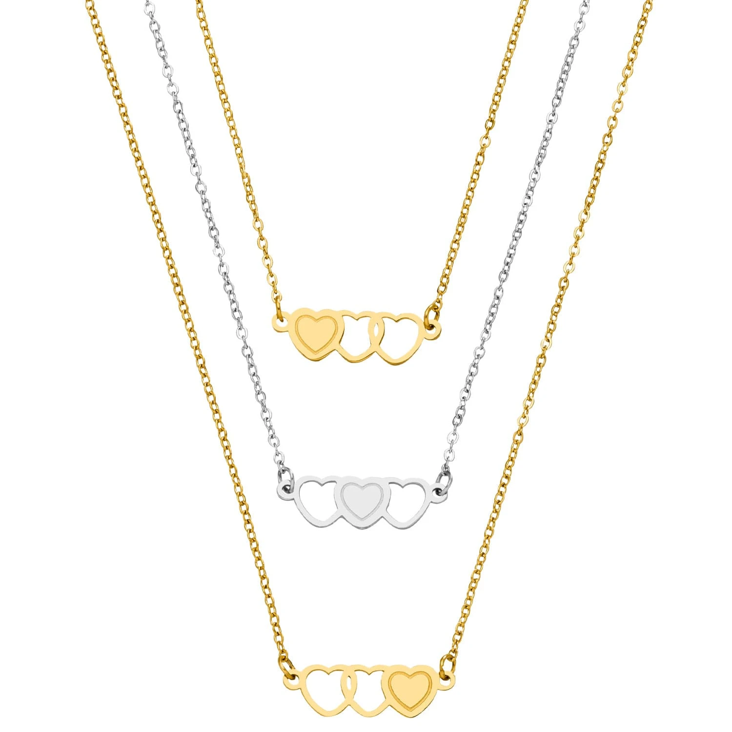 Süßes Sisters Set aus 3 Halsketten für Dich und Deine Schwestern oder Deine besten Freundinnen. Die ausgefüllten Herzen der Freundschaftsketten ergänzen sich gegenseitig.