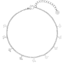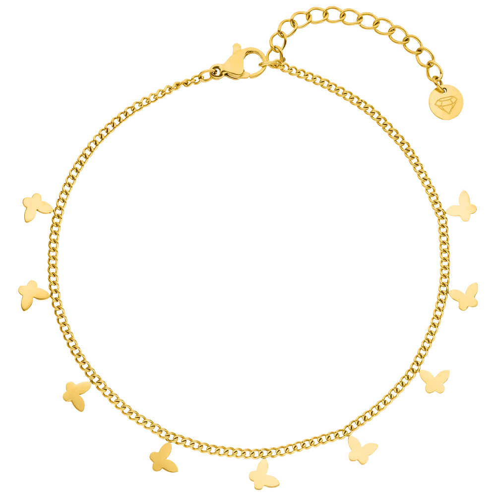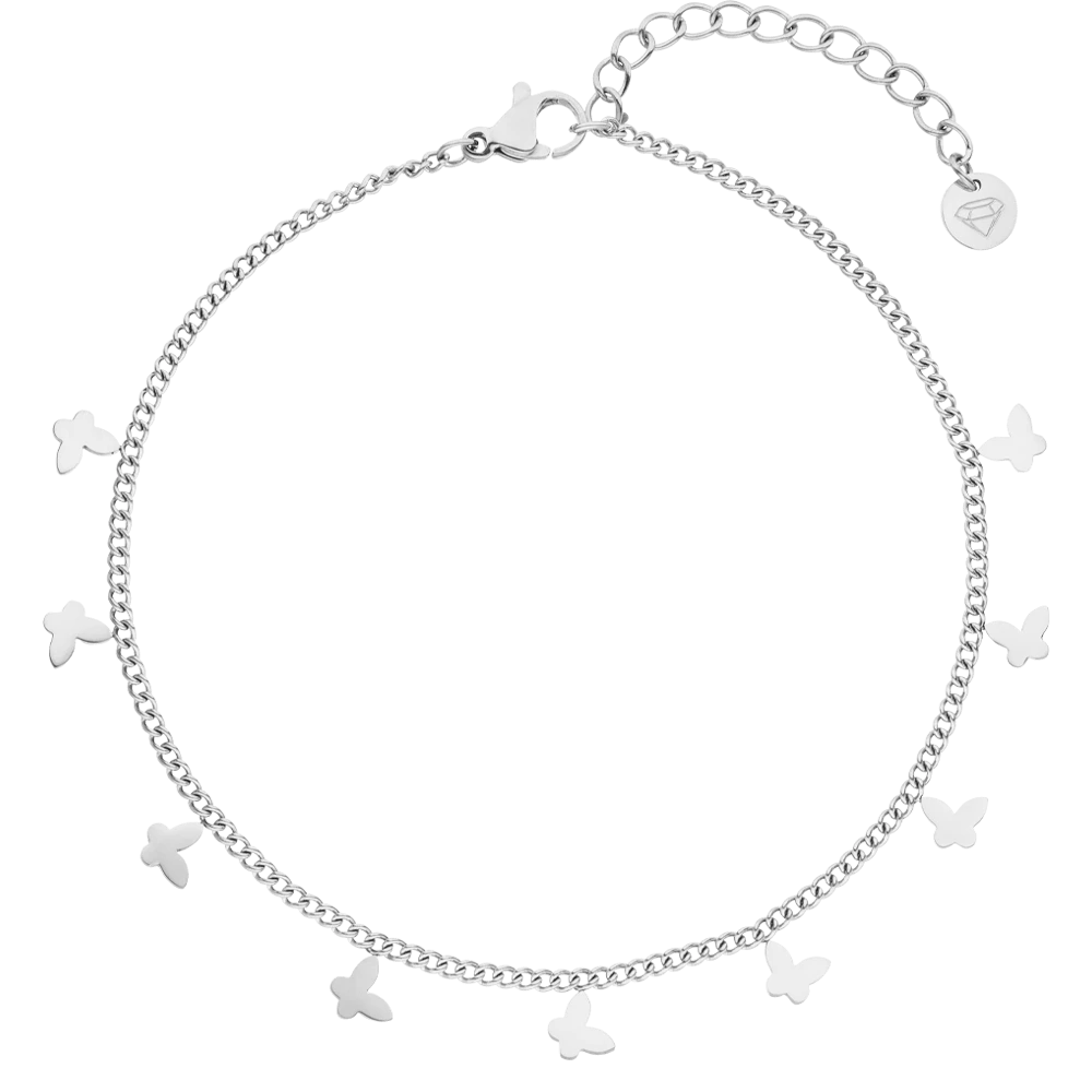 Eyecatcher: Wunderschöne Schmetterling Fußkette mit Butterfly-Details. Die süßen Schmetterlings Anhänger sind ein süßes Feature und passen zu jedem Outfit. Unsere Adela Fußkette aus Chirurgenstahl ist wasser- & duschfest, daher kann sie auch unter der Dusche und im Alltag getragen werden.