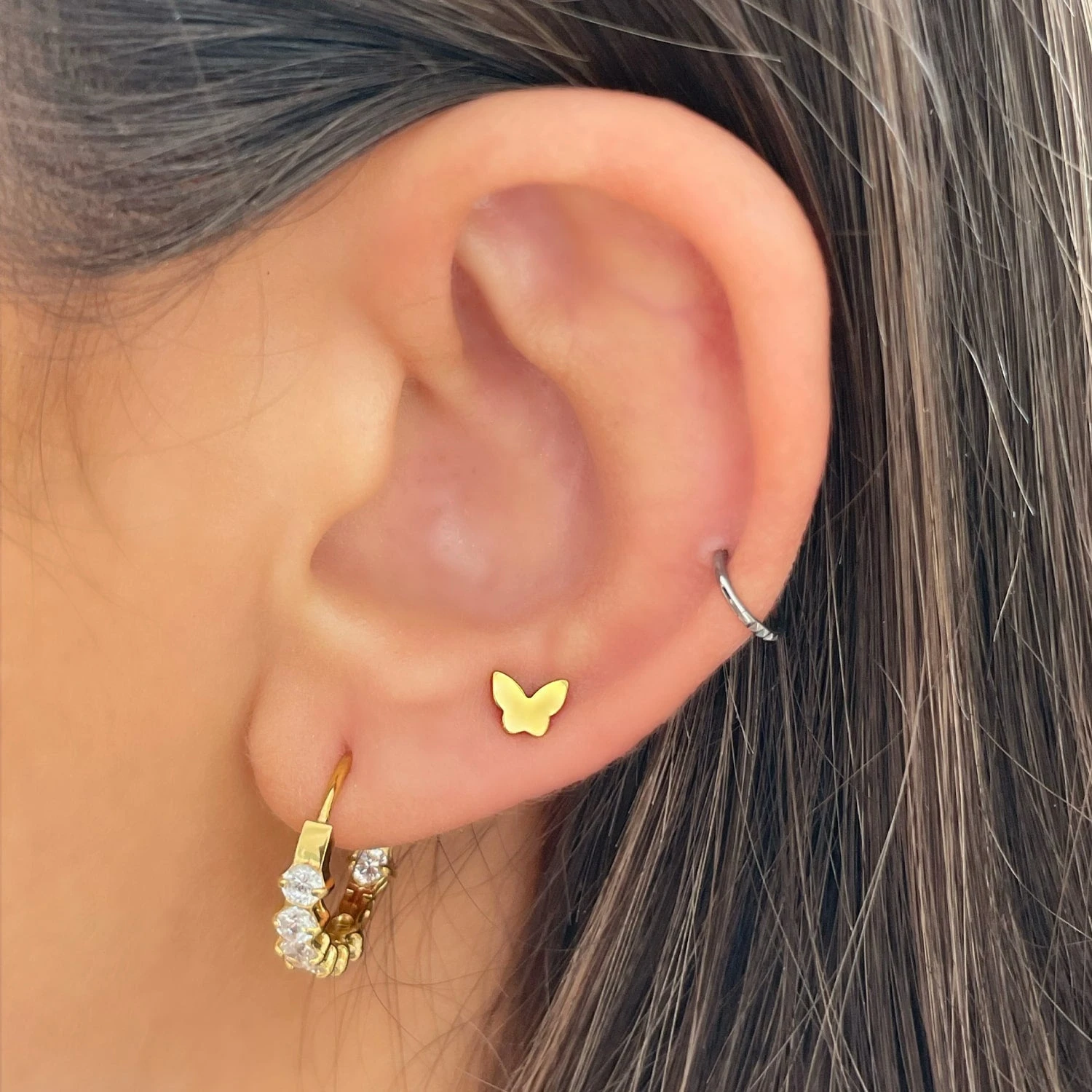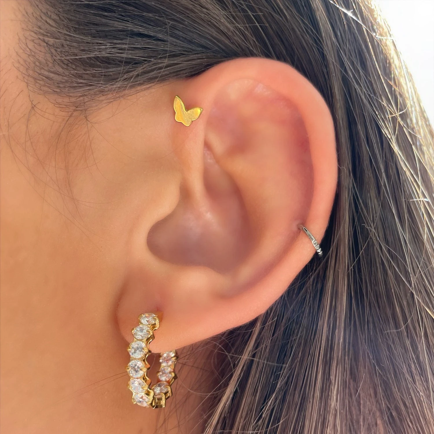Dieses verspielte Schmetterling Labret Piercing wird aus besonders hautverträglichem Titan gefertigt und eignet sich hervorragend zur Kombination mit Ohrringen zu einem eleganten Look.