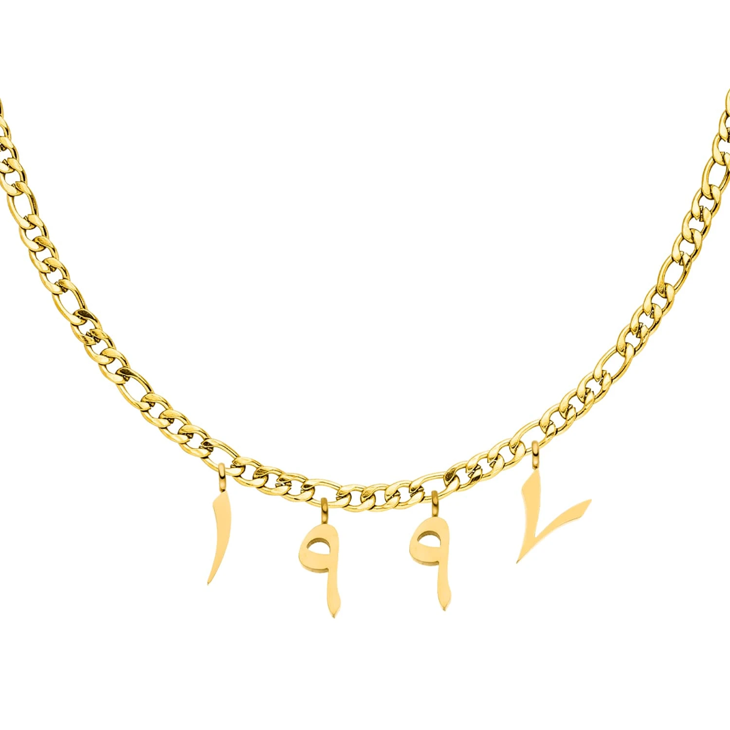 Dann ist diese wunderschöne Arabische Jahreszahl Halskette genau die richtige für Dich. Die arabische Schrift ist von Natur aus eine kalligraphische Schönheit und liegt aktuell im Trend bei vielen Designs.