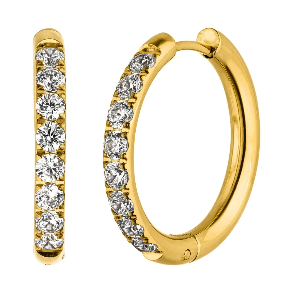 Unsere Big Klara Ohrringe werden aus Chirurgenstahl gefertigt und sind wasserfest. Diese Ohrringe sind mit strahlenden Zirkonia-Steinen besetzt, die wundervoll funkeln.Â