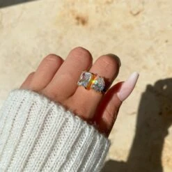 Diese raffinierte Kreation aus hochwertigem Chirurgenstahl ist mit zwei funkelnden Zirkonia-Steinen besetzt. Durch die offenen Fassungen rundum, fangen die Steine das Sonnenlicht besonders gut ein und bringen Deine Hand zum Strahlen. Der Anblick der funkelnden Zirkonia-Steine bringt Dich und alle um Dich herum zum Entzücken.