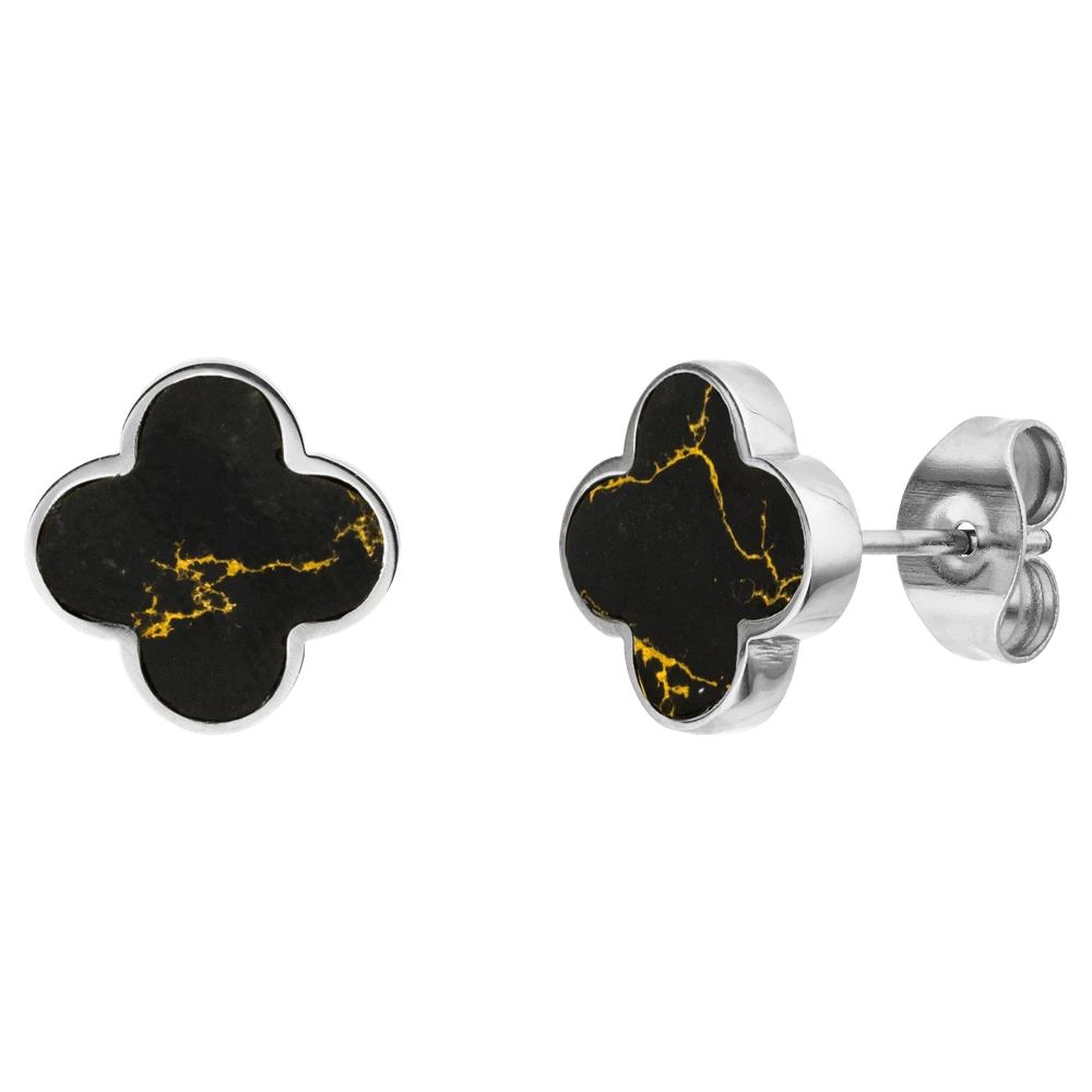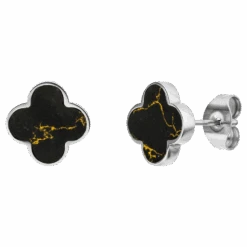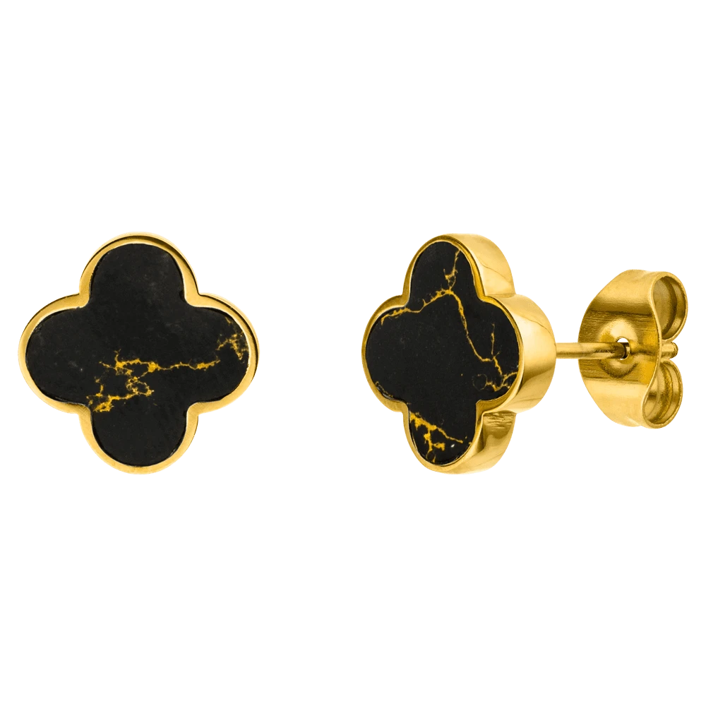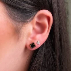Unsere eleganten Black-Gold Clover Ohrstecker eignen sich aufgrund ihrer dezenten & stilvollen Optik ideal fĂŒr den Business-Look und im Alltag.Â