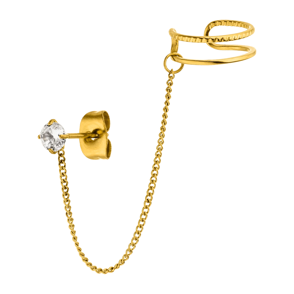 Dieser Bright Diamond Ohrstecker mit Earcuff ist durch eine filigrane Kette mit einem Ohrstecker verbunden und sorgt für einen glamourösen Auftritt. Der funkelnde Zirkonia-Stein setzt dem ein extra Highlight.