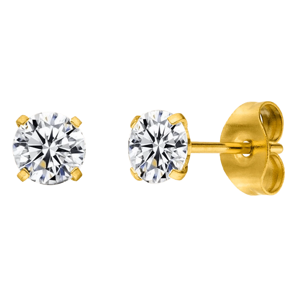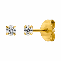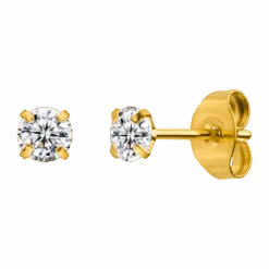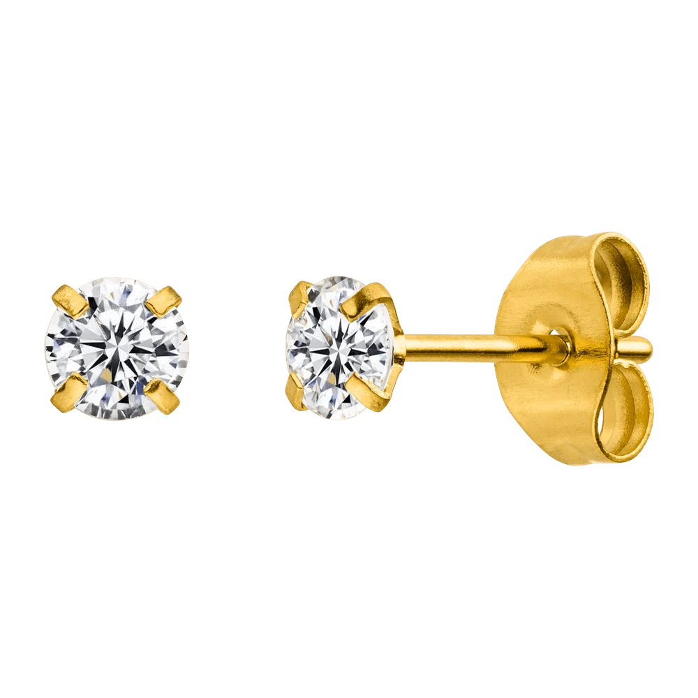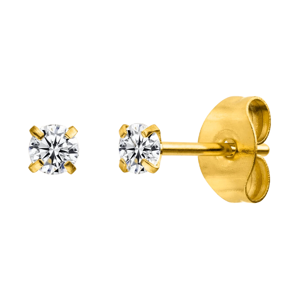Elegante Bright Diamond Ohrstecker mit eingefassten Zirkonia-Steinen: Diese 18 Karat vergoldeten Hingucker sorgen fĂĽr einen funkelnden Auftritt.