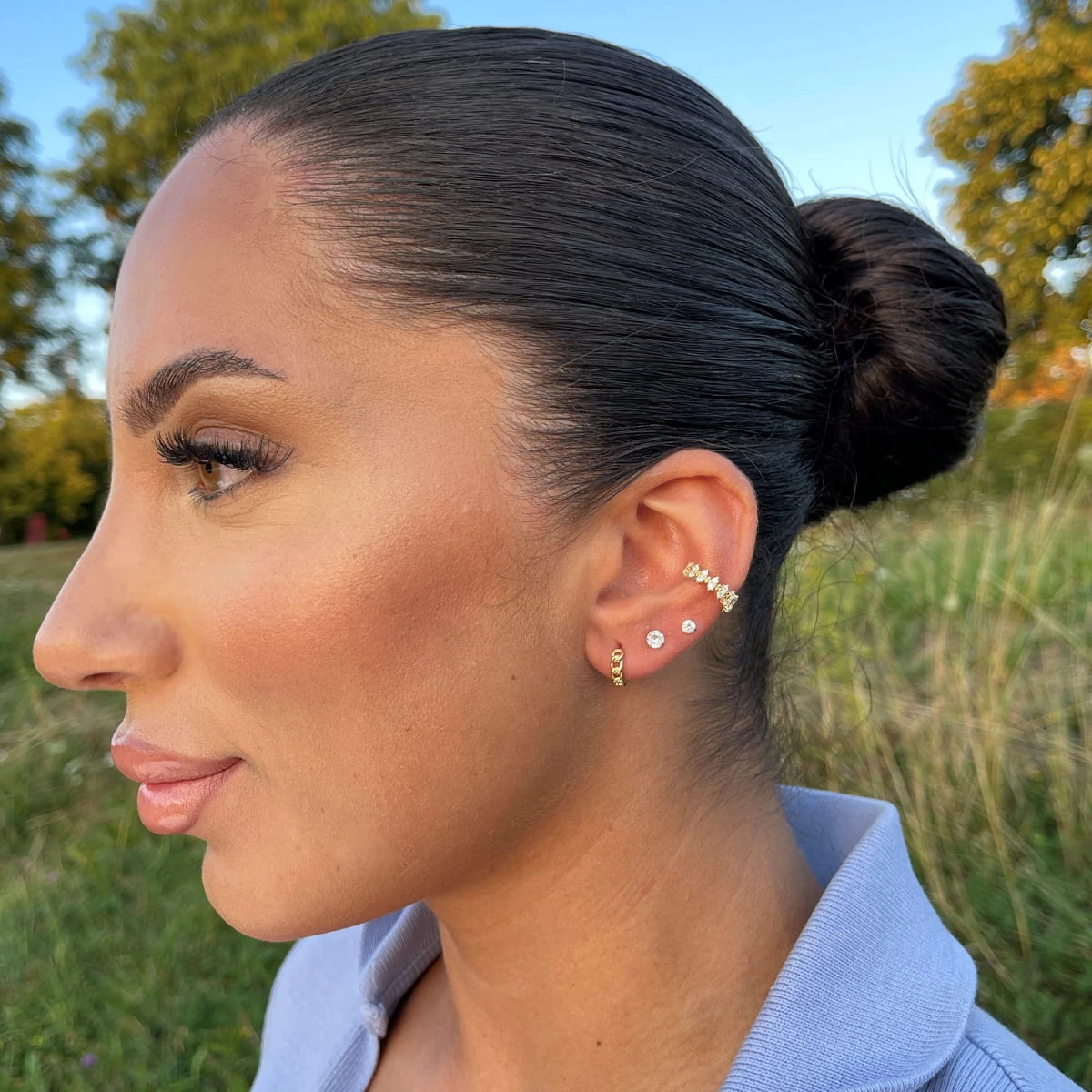 Unser eleganter Brili Ear Cuff funkelt bei Lichteinfall, dank seiner Zirkonia-Steine. Werte Dein Outfit mit diesem Ear Cuff auf.