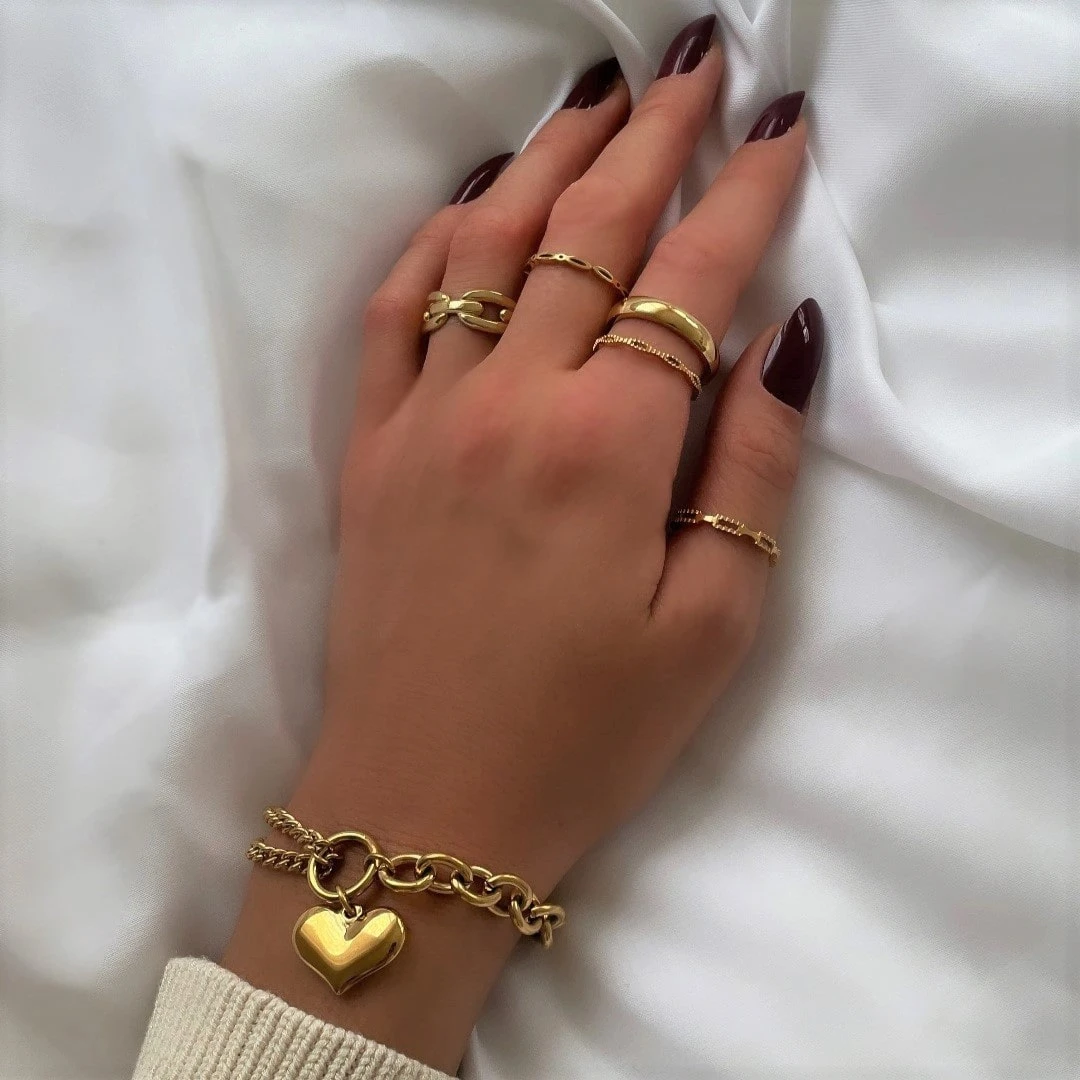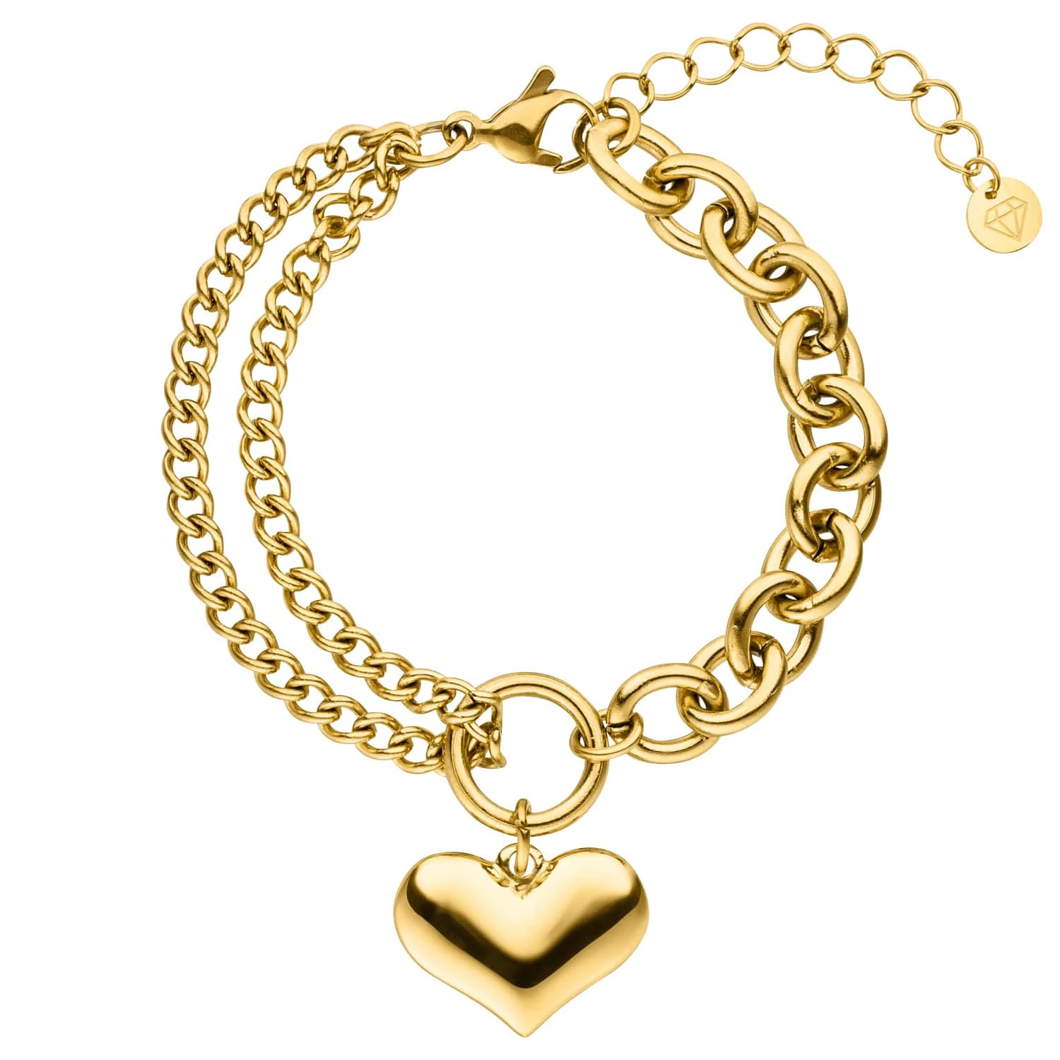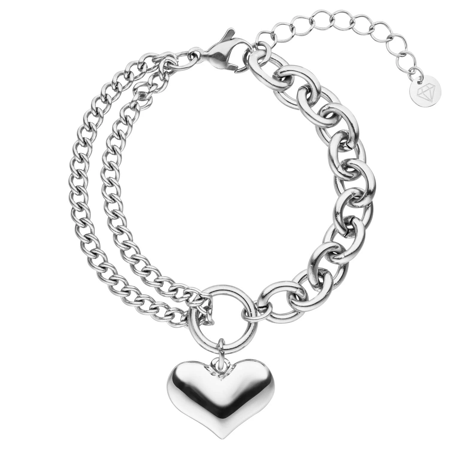 Unser Chunky Heart Armband wird aus bestĂ€ndigem Edelstahl gefertigt und ist daher wasserfest. Dieses Statement-Armband hat ein Herz AnhĂ€nger als Highlight. Das Chunky Heart Armband ist halbseitig im Double Layered Style designt, wĂ€hrend die andere HĂ€lfte Chunky ist. Ein absoluter Hingucker gepaart mit robusten Eigenschaften; also optimal fĂŒr den Alltag ist.