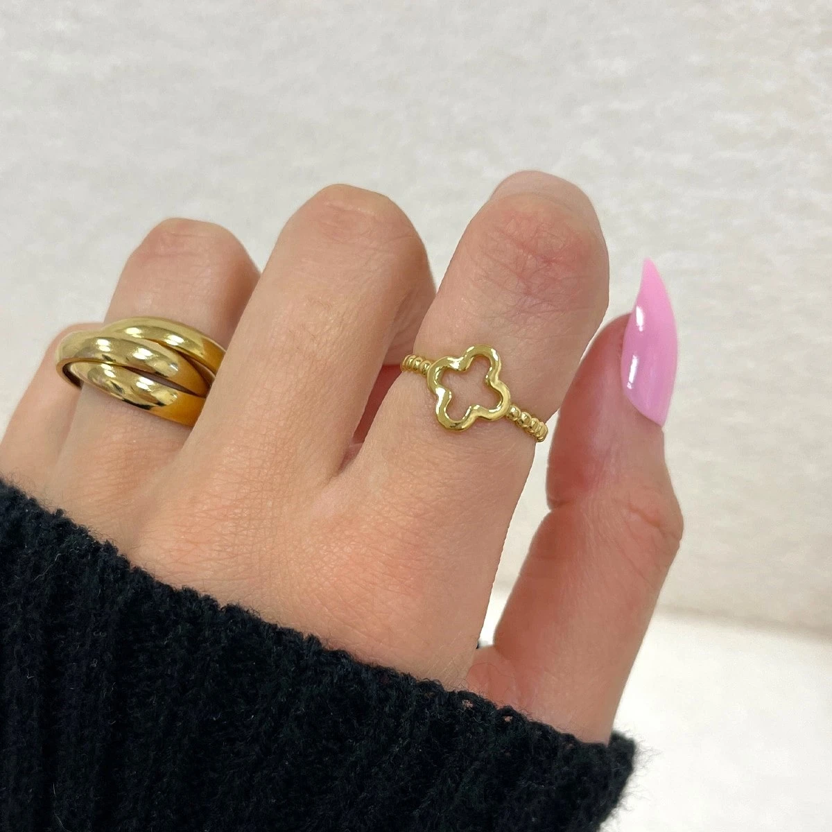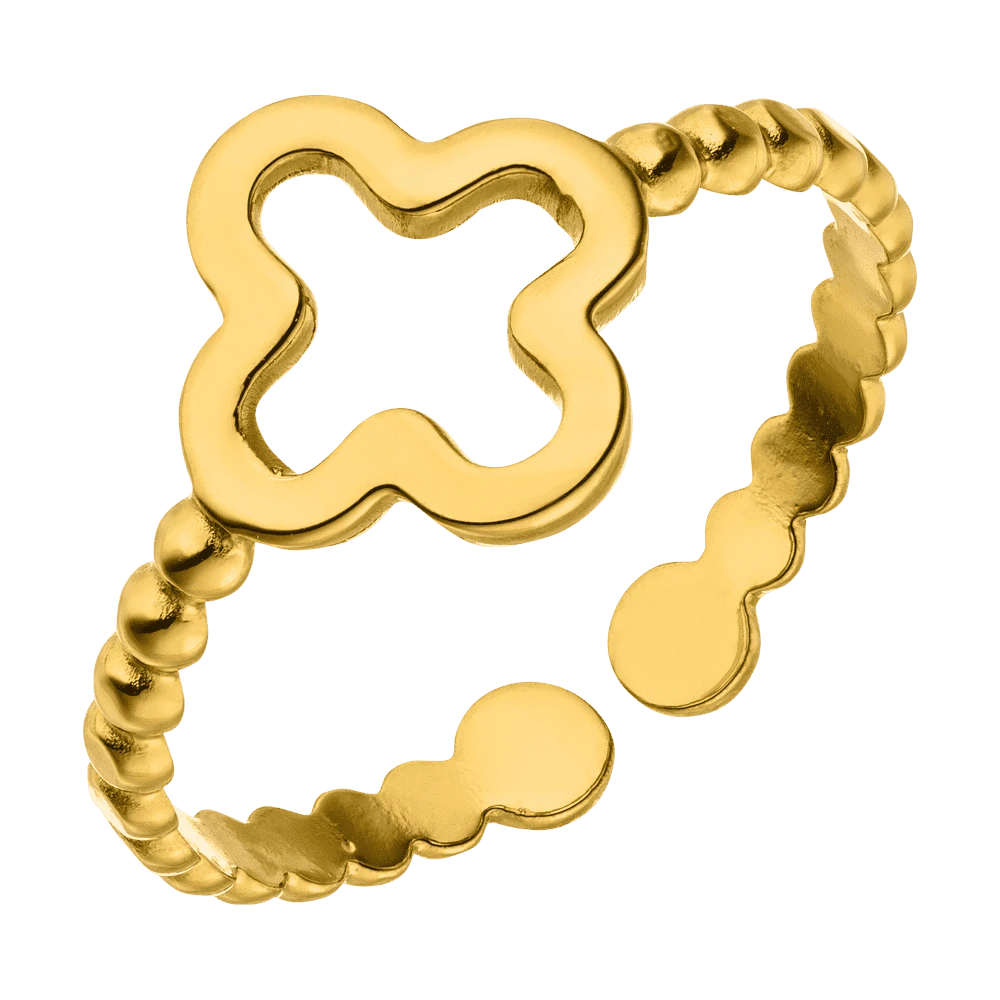 Dieser verstellbare Ring aus stilvollen Kleeblättern vereint modernes Design mit zeitloser Eleganz. Seine anpassbare Größe sorgt für einen perfekten Sitz und hohen Tragekomfort. Die hochwertige Verarbeitung und das glänzende Finish machen ihn zu einem zeitlosen Schmuckstück für jeden Anlass.
