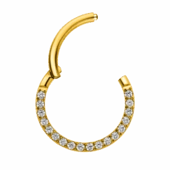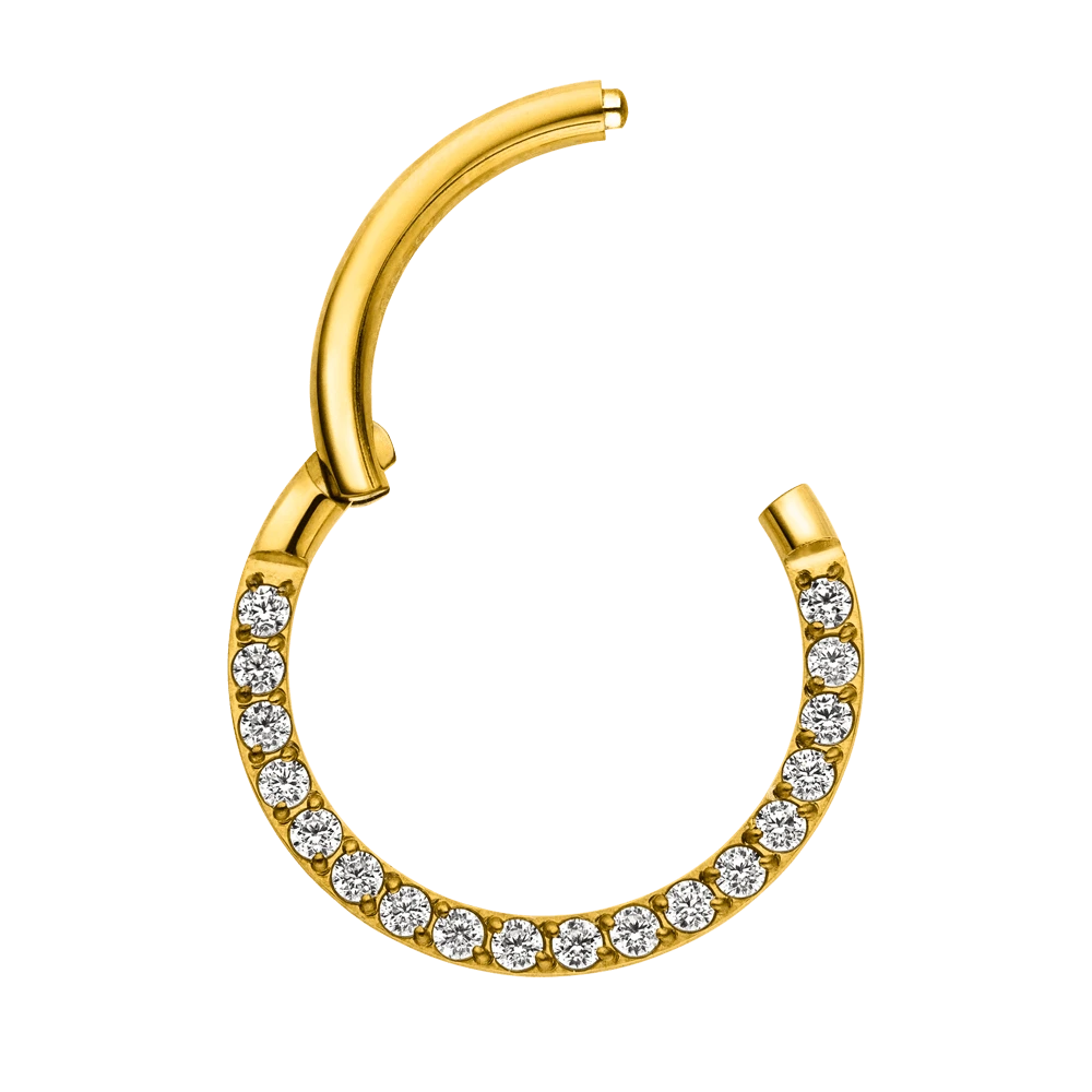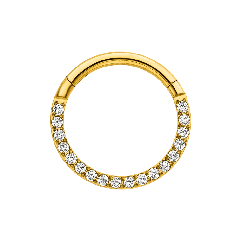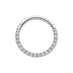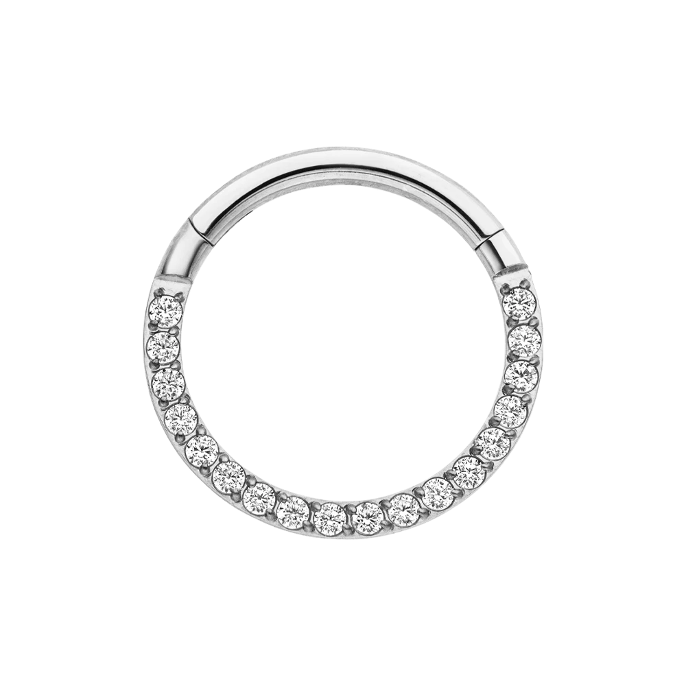 Hochwertiger Segmentring mit Clickerverschluss aus hochwertigem Titan. Dieses Crystal Clicker Piercing sorgt für ein besonders funkelndes Detail an Deinem Outfit, da er mit feinen Zirkonia-Steinen besetzt ist.