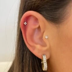 Unser gewindeloses Cute Four Piercing wird aus hochwertigem Titan gefertigt und ist mit funkelnden Zirkonia-Steinen besetzt.