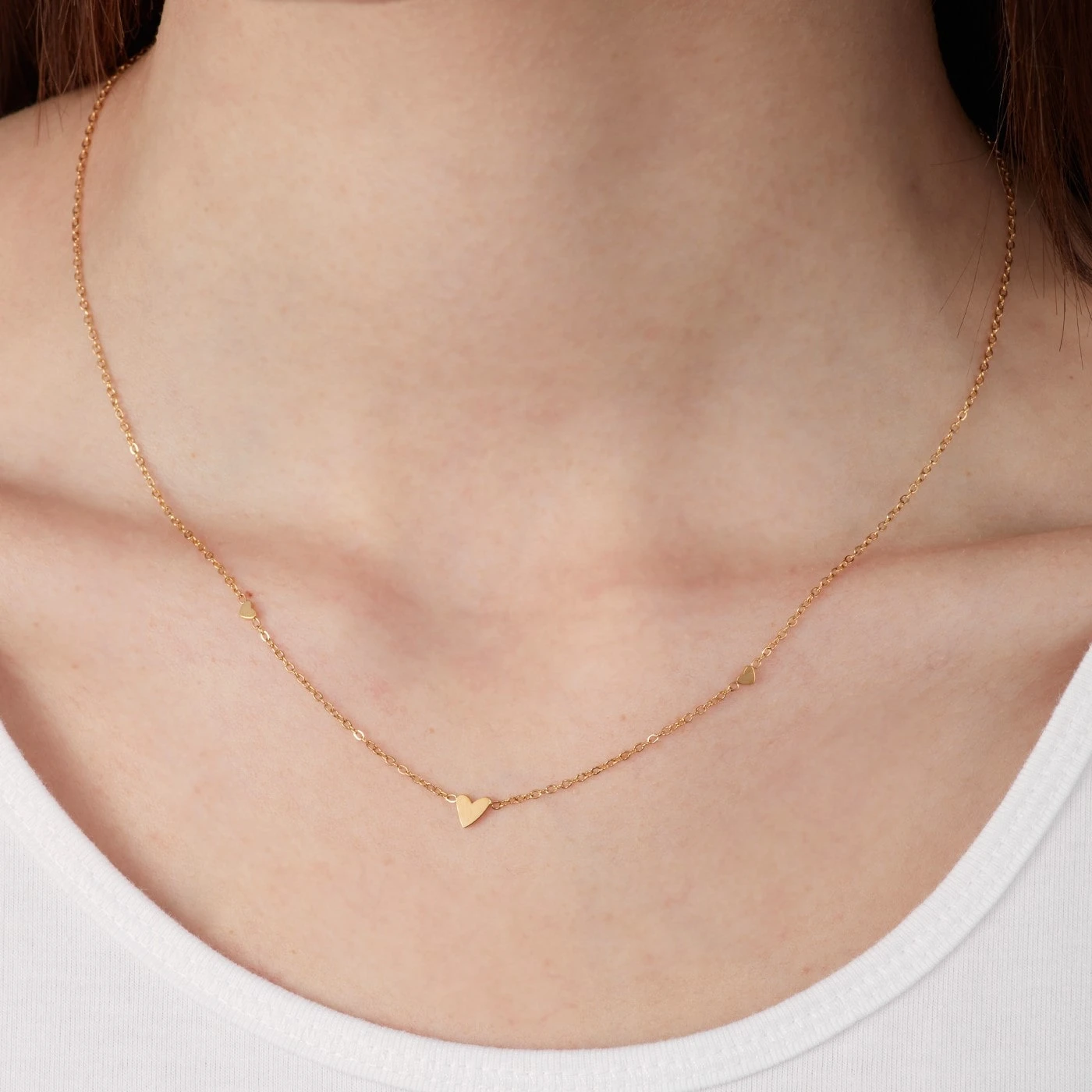 Filigrane Halskette aus wasser- und duschfestem Chirurgenstahl in feinem Design. Die Cute Heart Kette ist mit drei süßen Herzchen rundum bestückt.