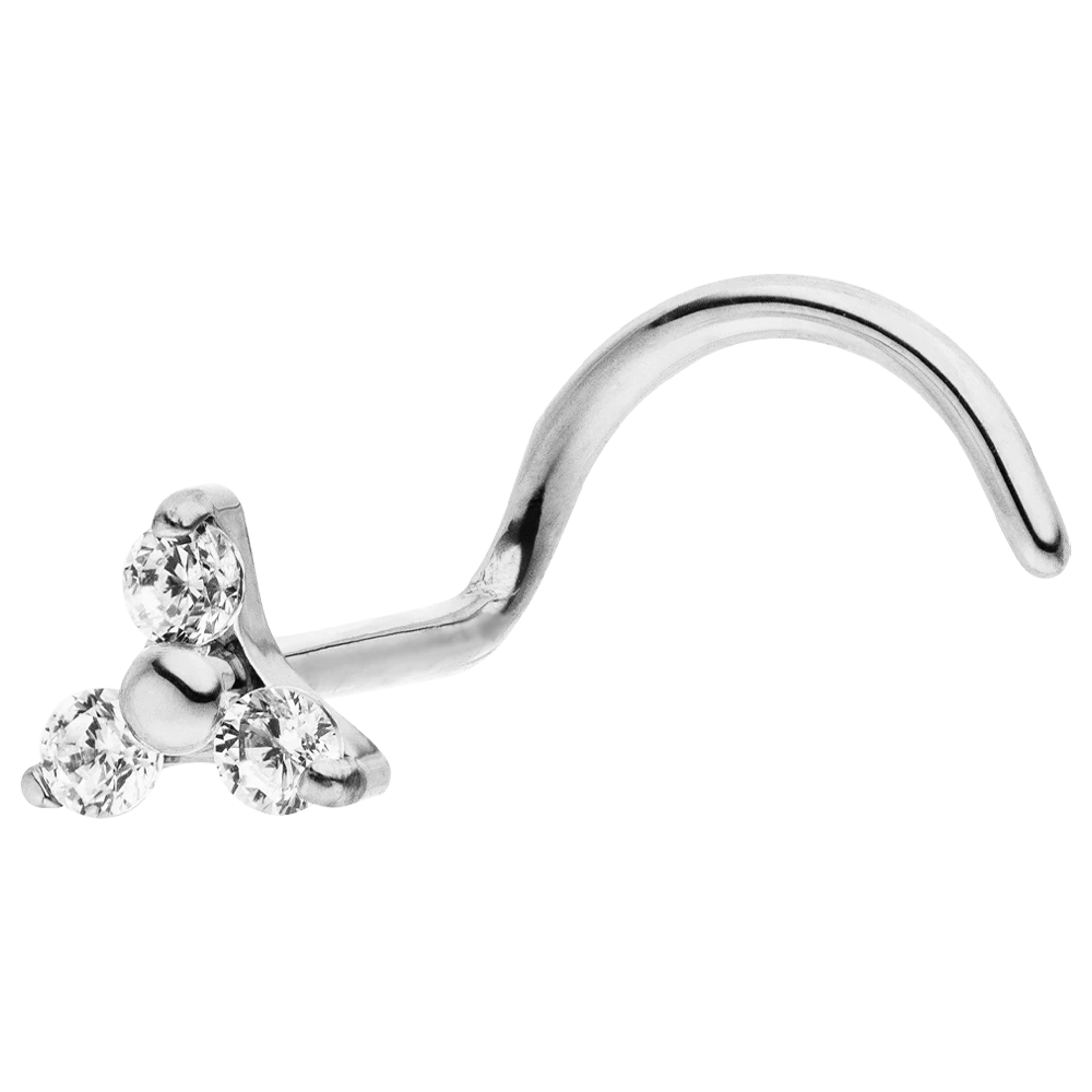 Eleganter Nasenstecker aus hochwertigem Titan, ideal für empfindliche Haut. Die zarte funkelnde Front besteht aus drei Zirkonia-Steinen und verleiht einen dezenten Glanz. Perfekt für einen stilvollen und minimalistischen Look.