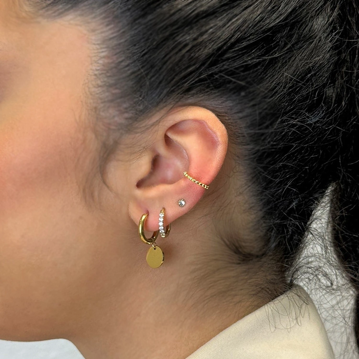 Bringe diesen Ear Cuff an beliebigen Stellen an Deinem Ohr an, um Dein Outfit aufzustylen.