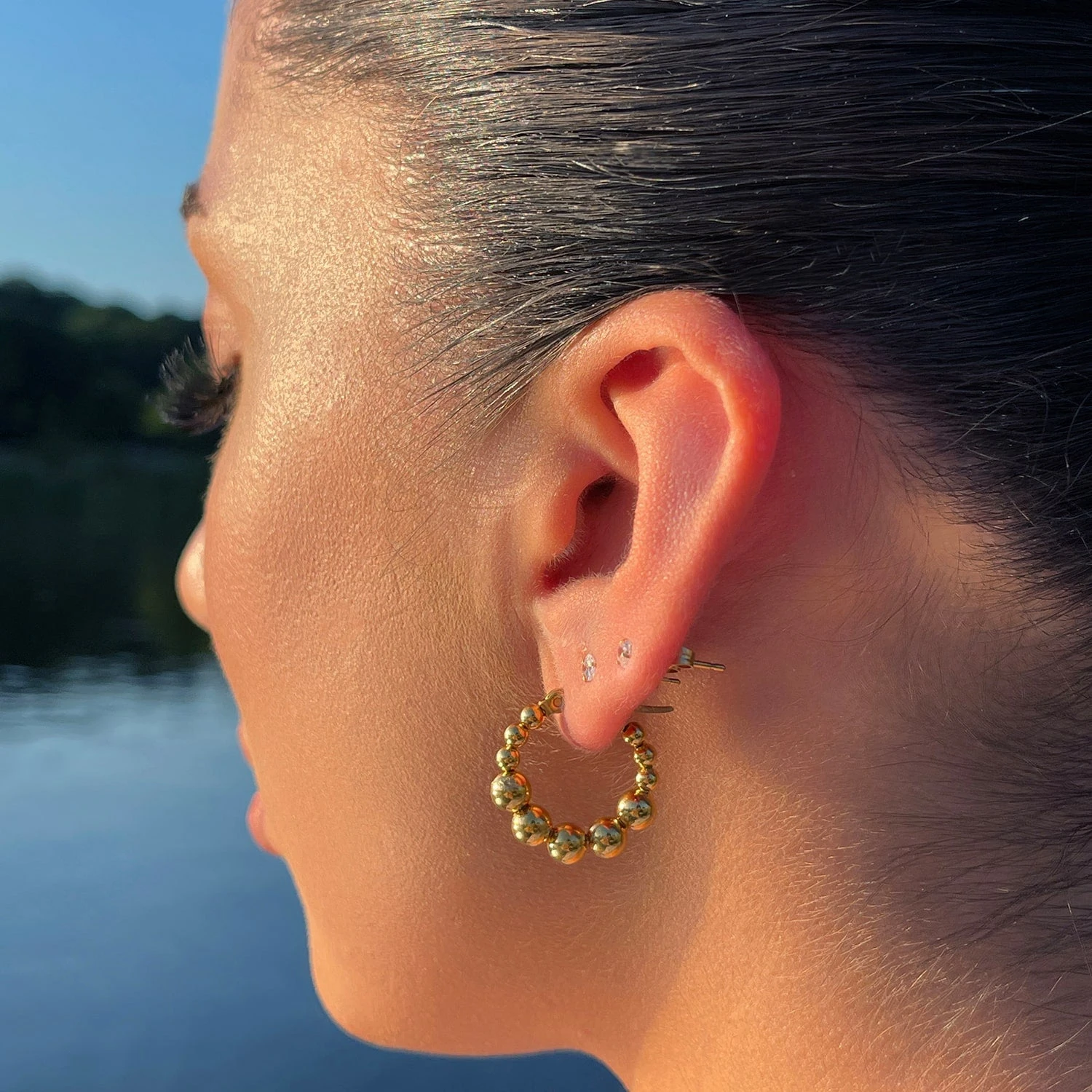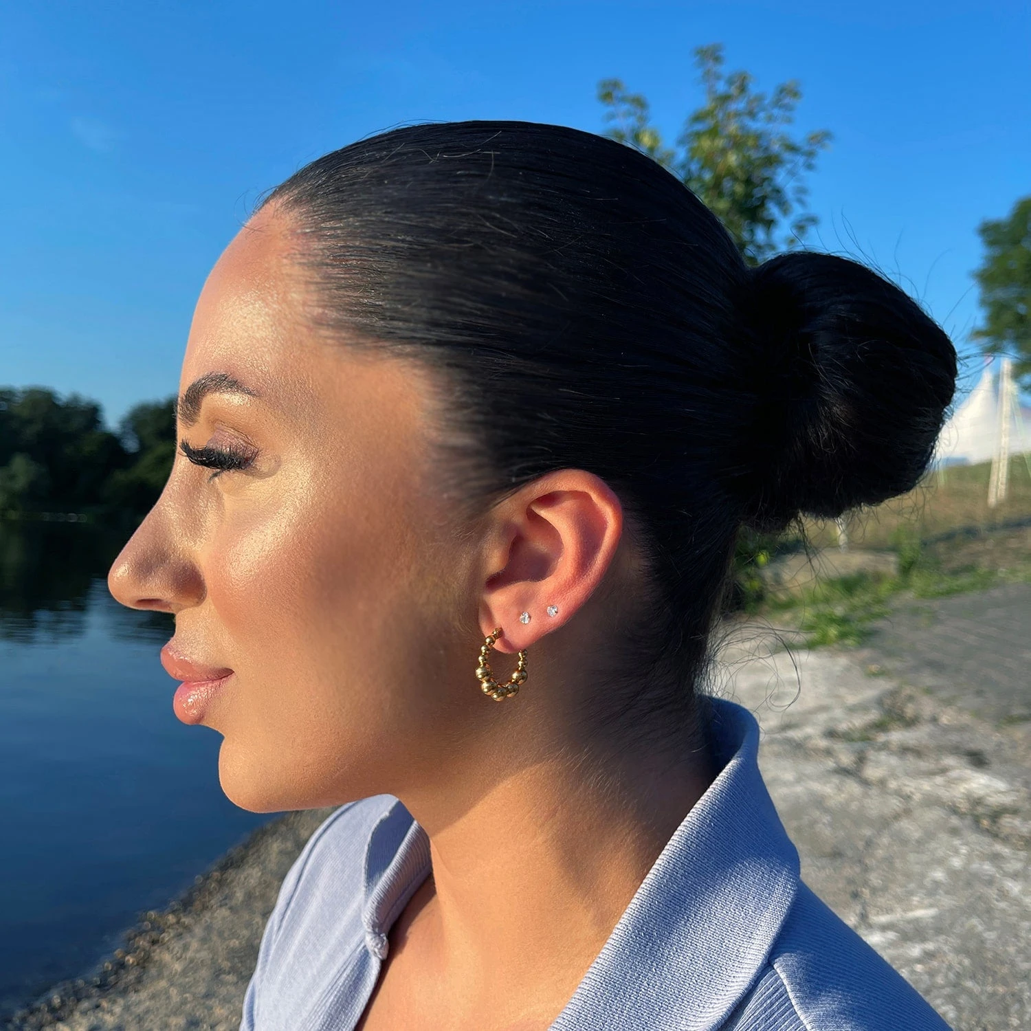 Unsere Dotty Ohrringe sind mit Kügelchen rundum bestückt. Durch ihre elegant-dezente Optik, können sie sowohl im Alltag als auch zum Business Outfit getragen werden. Diese Ohrringe stylen gekonnt jedes Outfit auf.