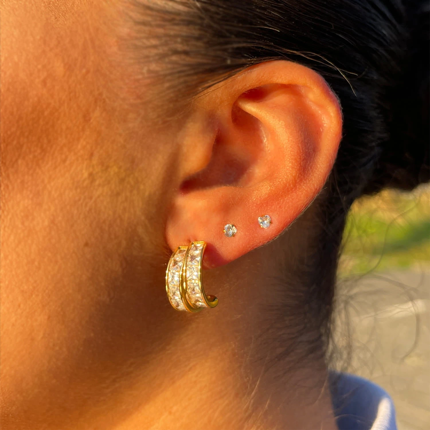Die Double Shine Ohrringe werden aus beständigem Chirurgenstahl gefertigt und sind daher wasser- & duschfest, sowie besonders hautverträglich.