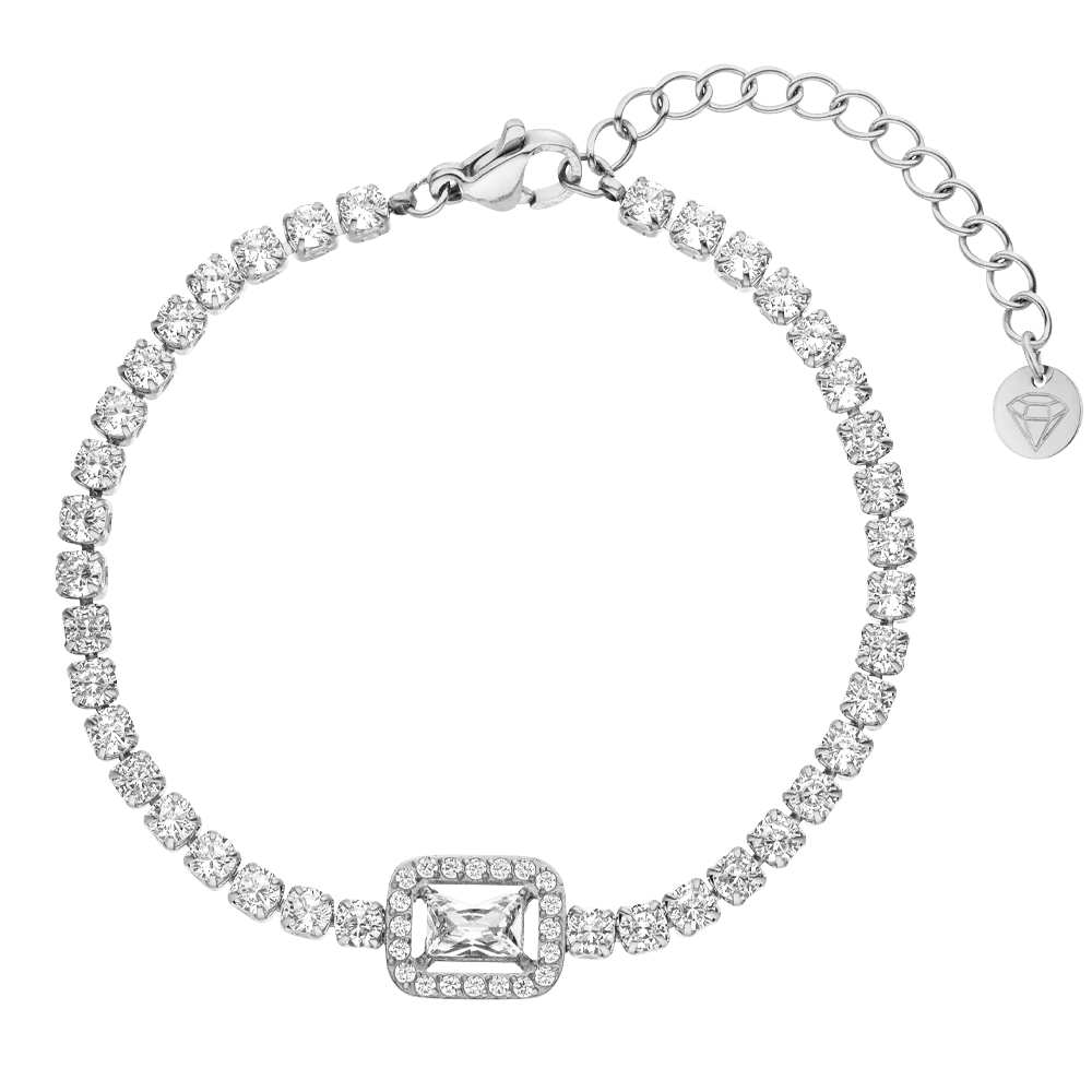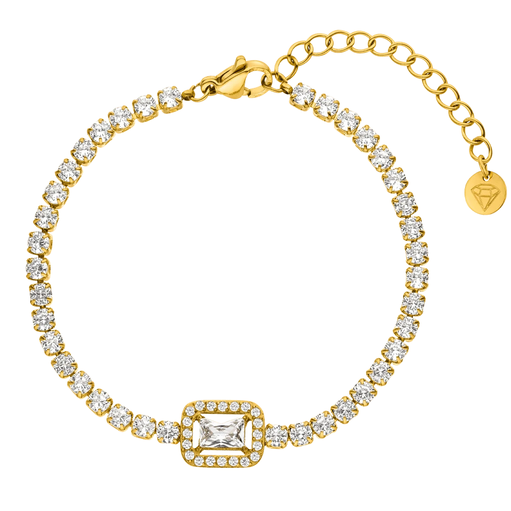 Luxuriöses Tennis Armband aus Chirurgenstahl, besetzt mit strahlenden Zirkonia-Steinen. Unser Iced Out Tennis Armband ist dank der hochwertigen Materialien sowohl wasser- als auch duschfest. Dieses funkelnde Tennis Armband eignet sich hervorragend fĂŒr den Alltag, aber auch beim Business-Outfit punktet es durch Robustheit.