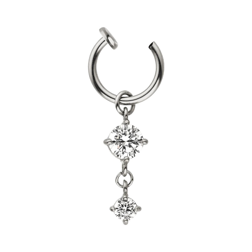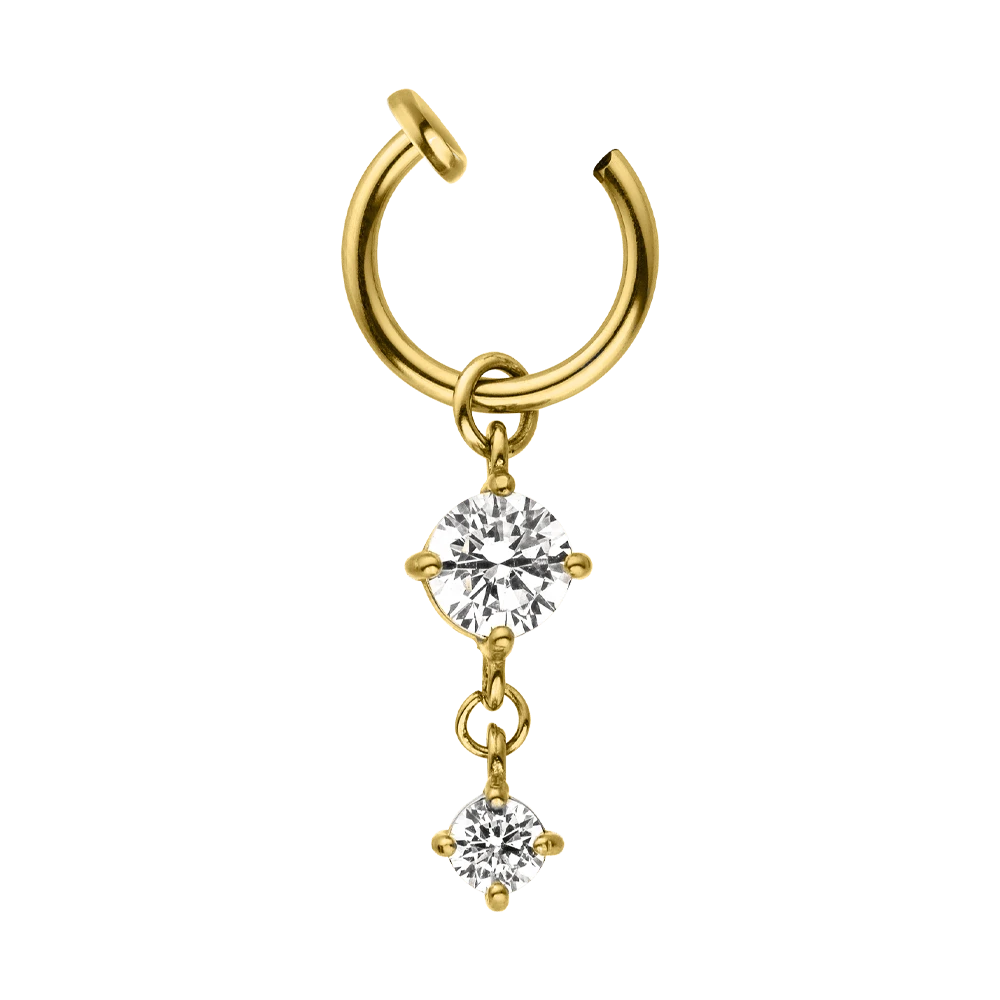 Verleihe deinem Look mit unserem Fake Bauchnabelpiercing mit zwei funkelnden runden Steinen einen eleganten Akzent.