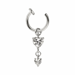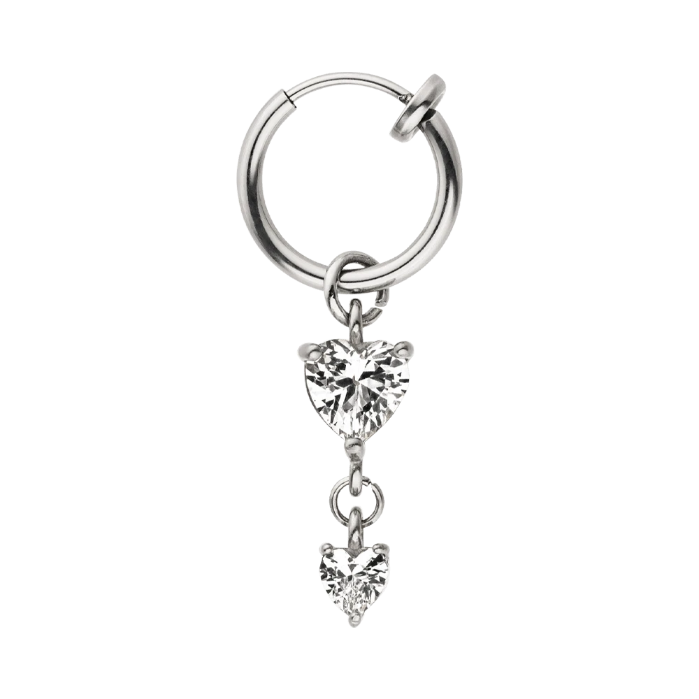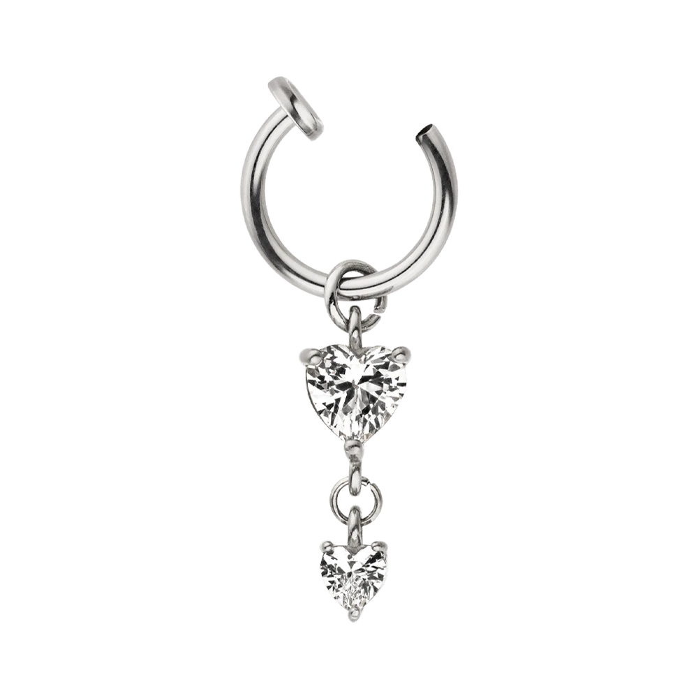 Verleih deinem Look mit unserem Fake Bauchnabelpiercing mit zwei funkelnden Herz-Steinen einen romantischen Akzent.