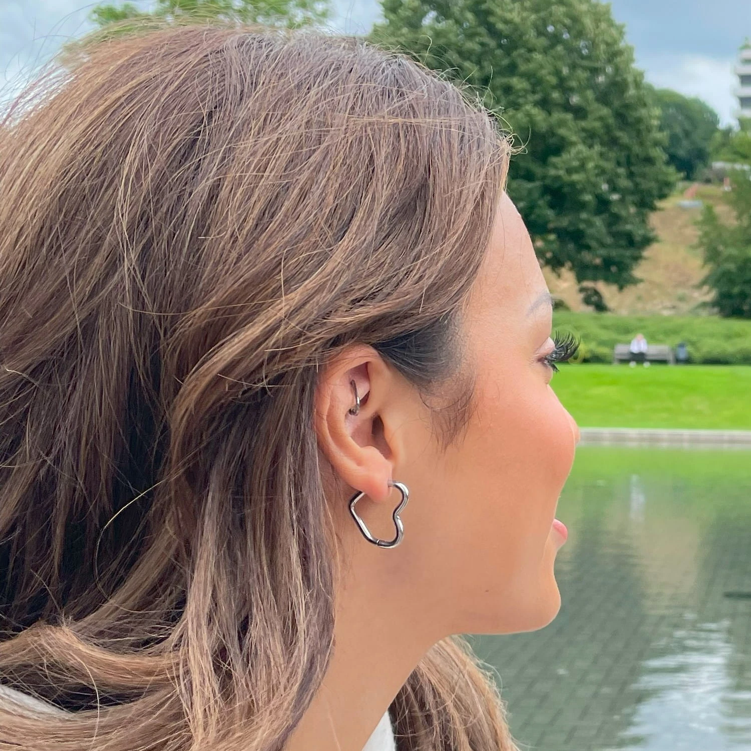 Klassisch-elegante Ohrringe: Diese herzförmigen Creolen werden aus besonders hautfreundlichem Chirurgenstahl gefertigt und sind wasser- und duschfest. Unsere Fancy Heart Ohrringe sind super kombinierbar mit auffälligeren DIAMOND MODE Ohrpiercings.