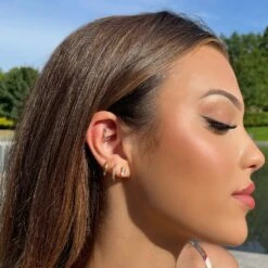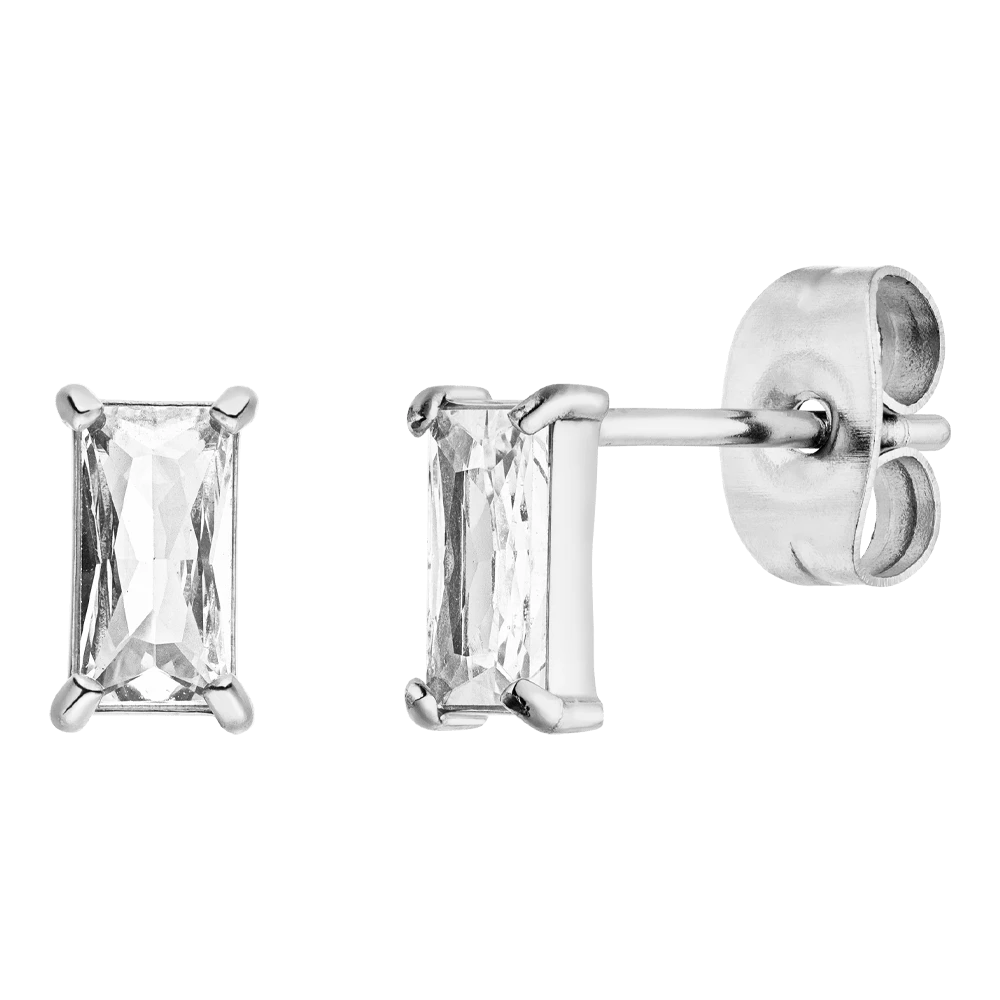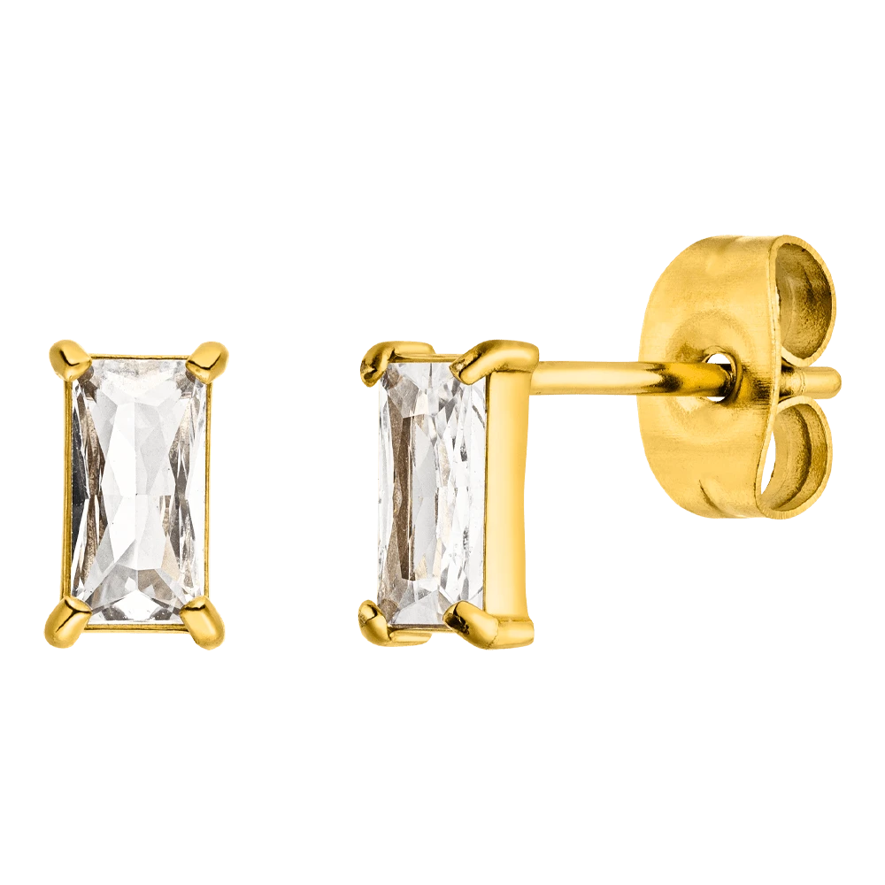 Elegante Fine Baguette Ohrstecker mit eingefassten Zirkonia-Steinen: Diese 18 Karat vergoldeten Hingucker sorgen für einen funkelnden Auftritt.