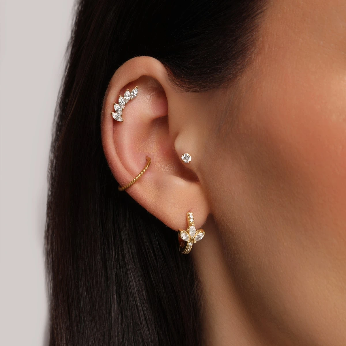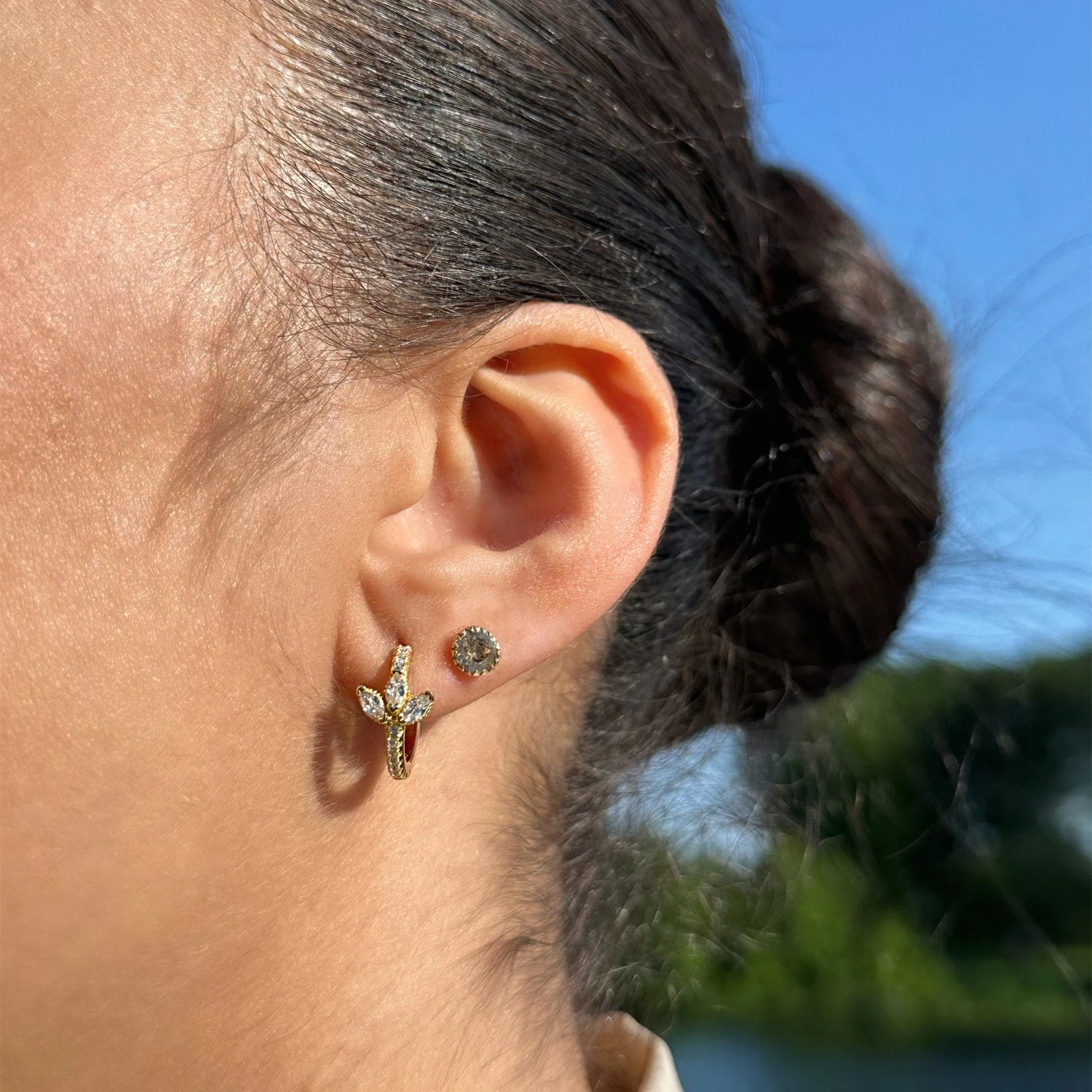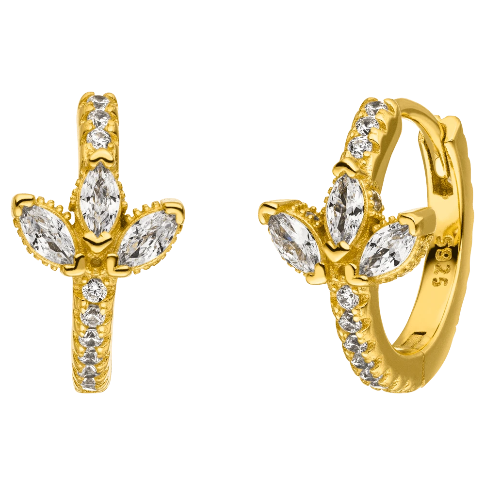 Bringe mit unseren eleganten Fiorella Ohrringen Dein Outfit zum Funkeln! Die Steinchen sind in Form einer Lotus-Blüte angereiht.