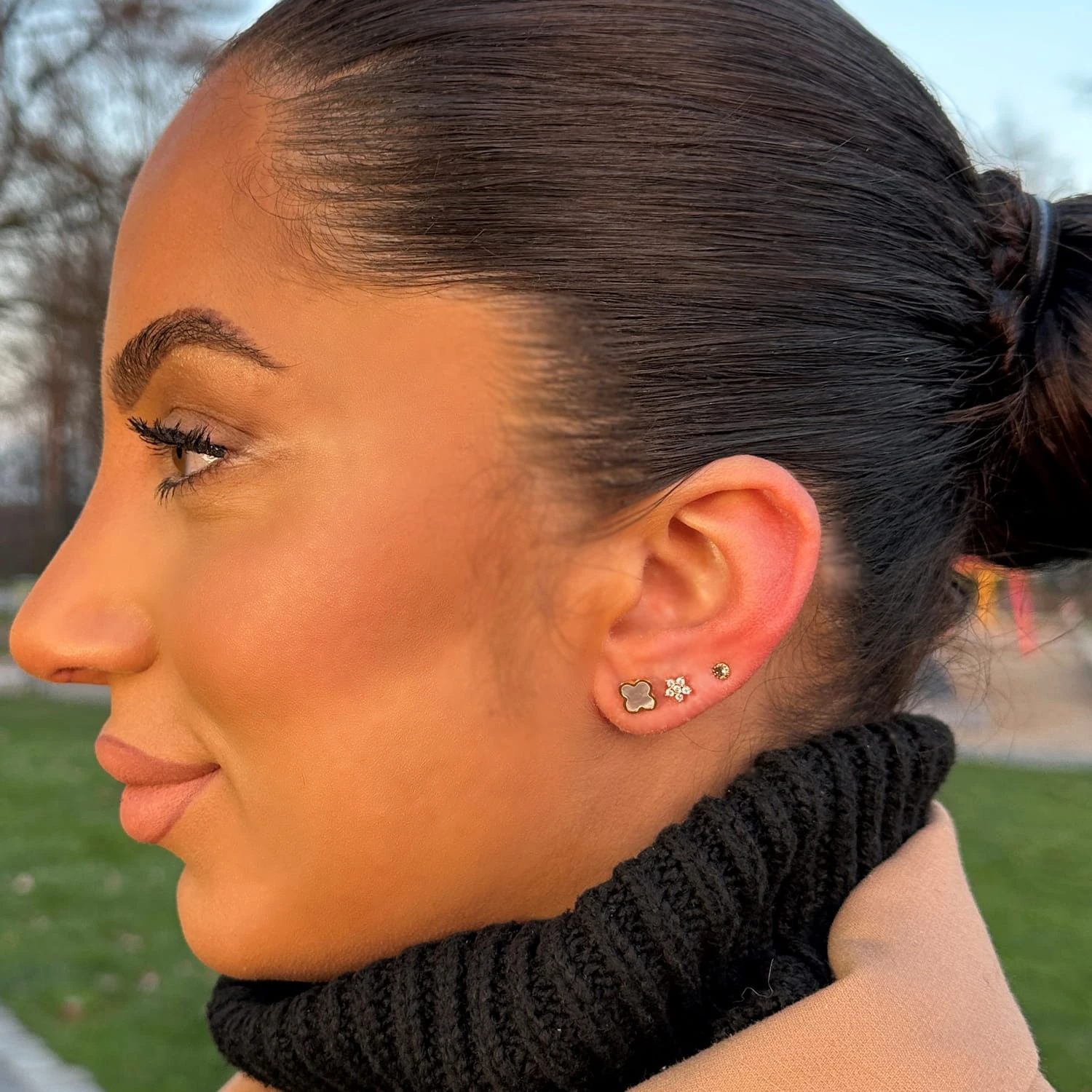 Zierlich-dezente Flower Ohrstecker mit eingefassten Zirkonia-Steinen in Blumenform: Diese funkelnden Hingucker sorgen für einen eleganten Auftritt.