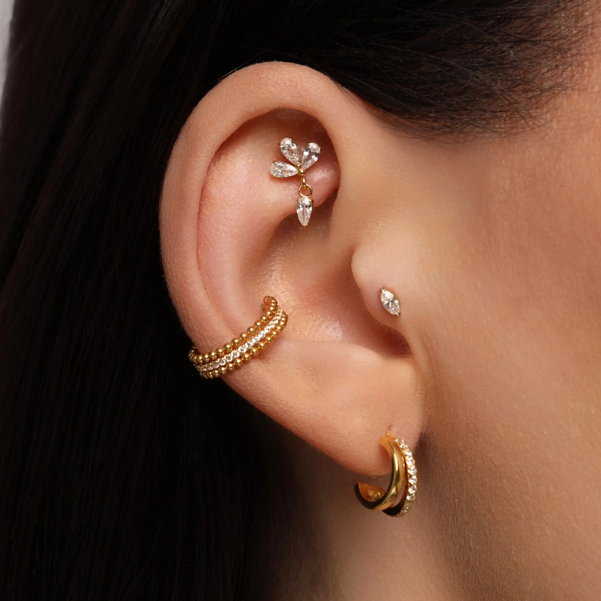 - Verwendung: Piercing, Tragus, Conch, Lobe oder Helix