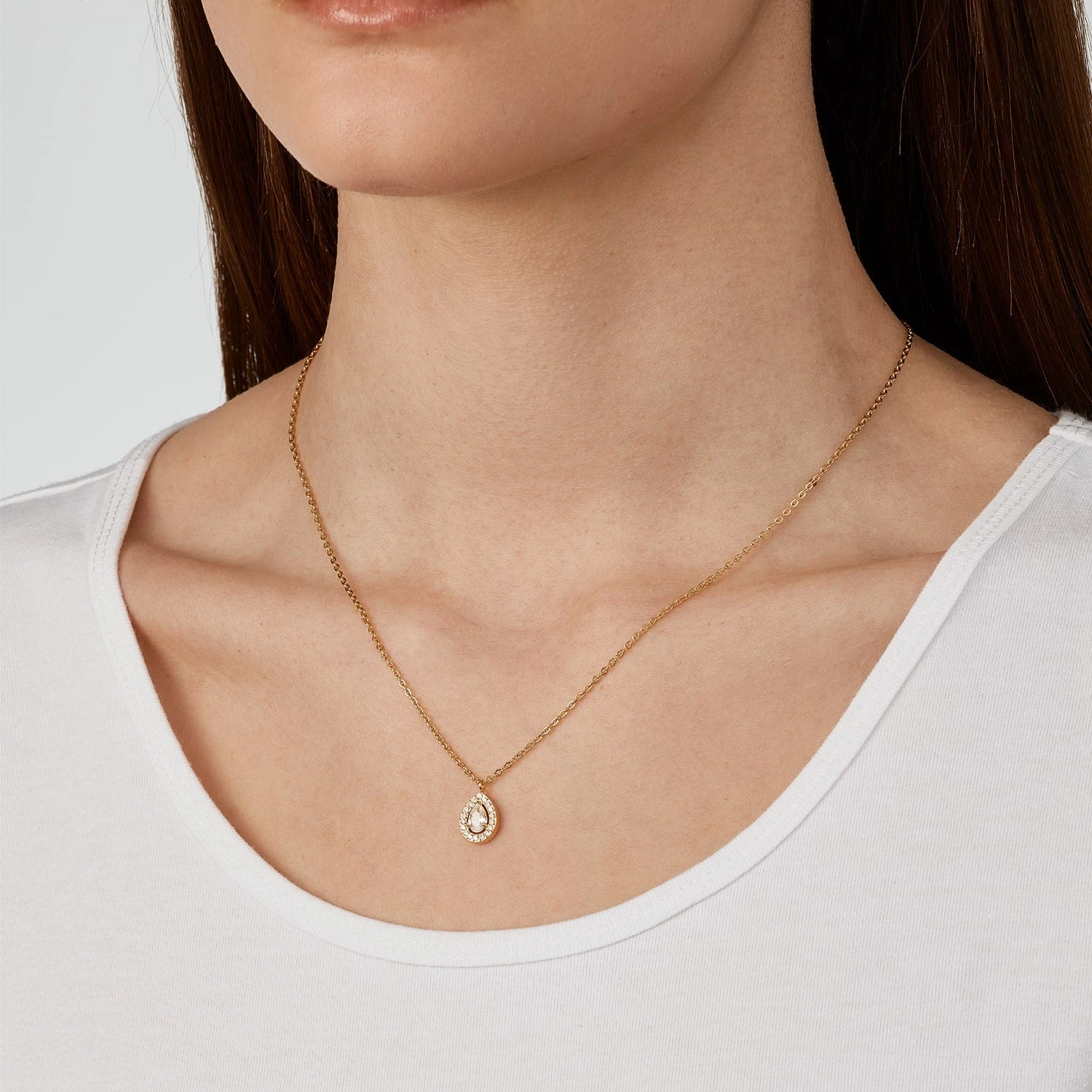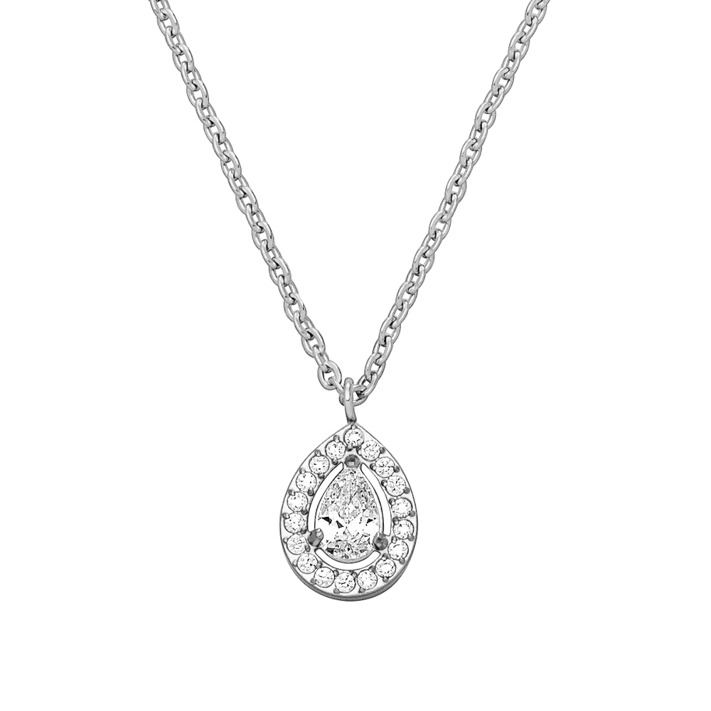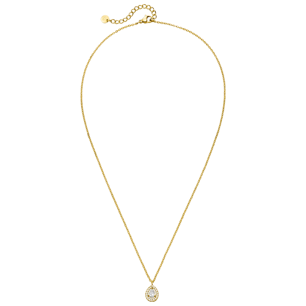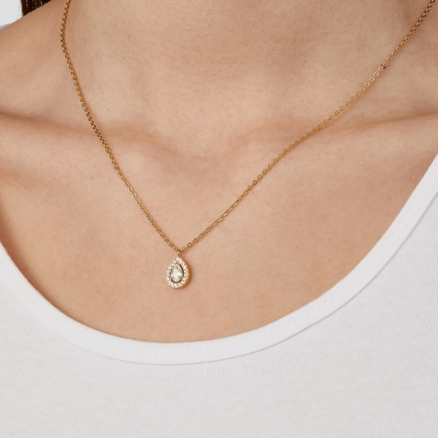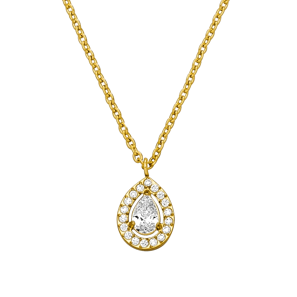 Klassisch elegante Halskette aus Chirurgenstahl mit prächtigem Anhänger, der mit hochwertigen Zirkonia-Steinen bestückt ist. Der strahlende Anhänger unserer Glamour Drop Kette fängt nicht nur das Sonnenlicht ein, um noch mehr zu strahlen, sondern auch die Blicke aller um Dich herum.