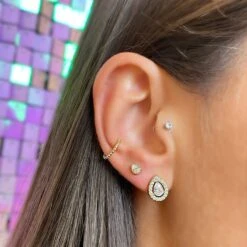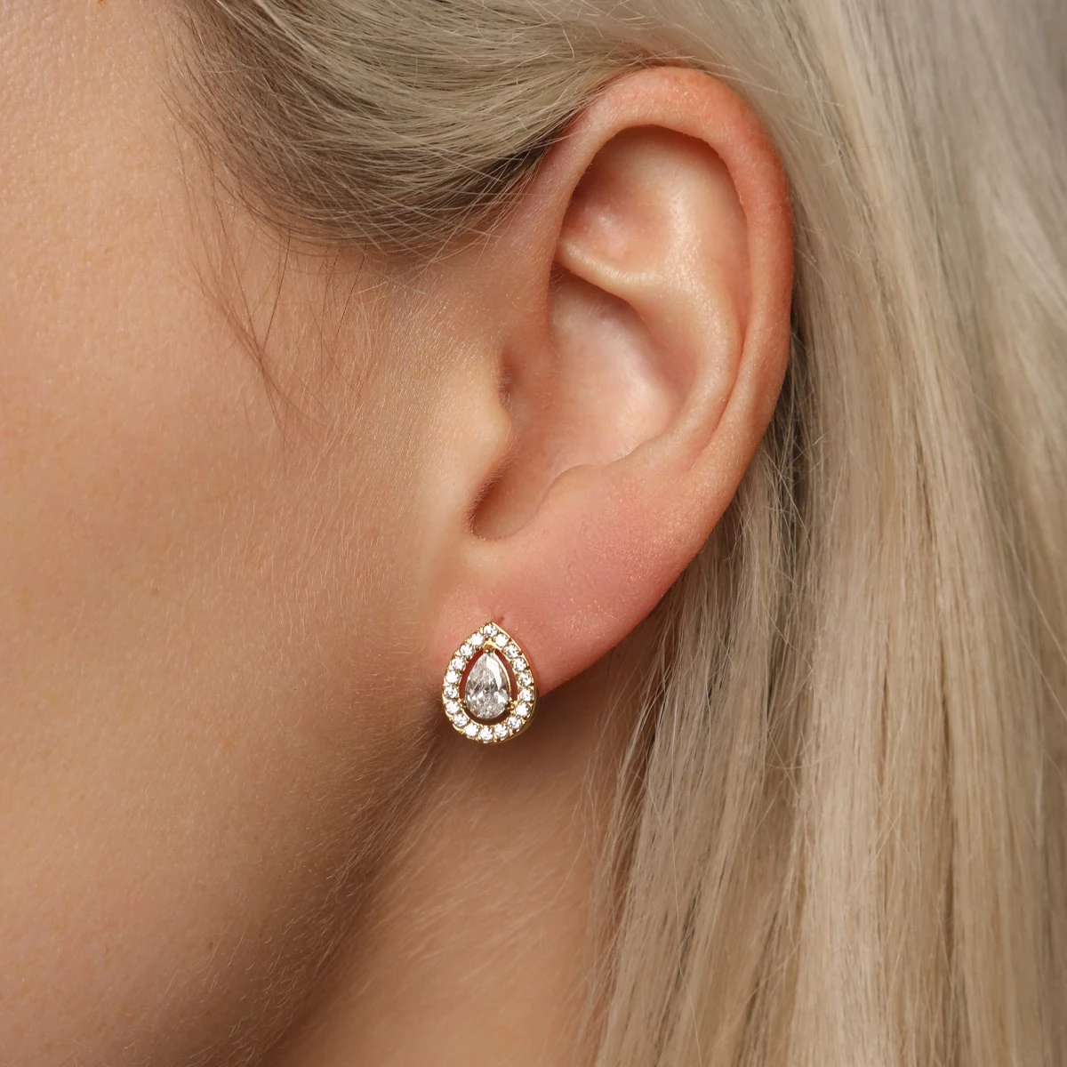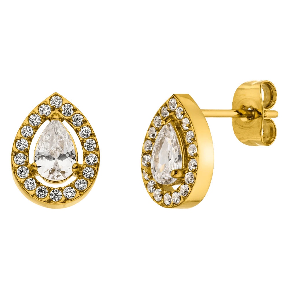 Elegante Glamour Drop Ohrstecker mit eingefassten Zirkonia-Steinen: Diese 18 Karat vergoldeten Hingucker sorgen für einen funkelnden Auftritt.