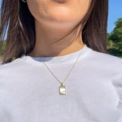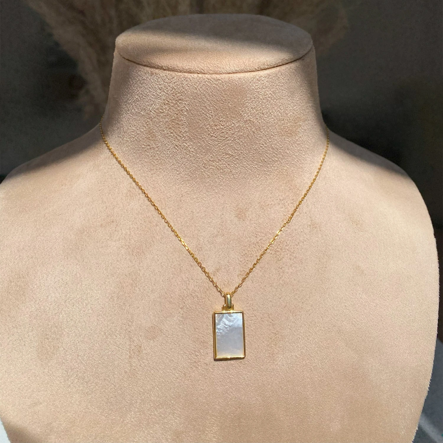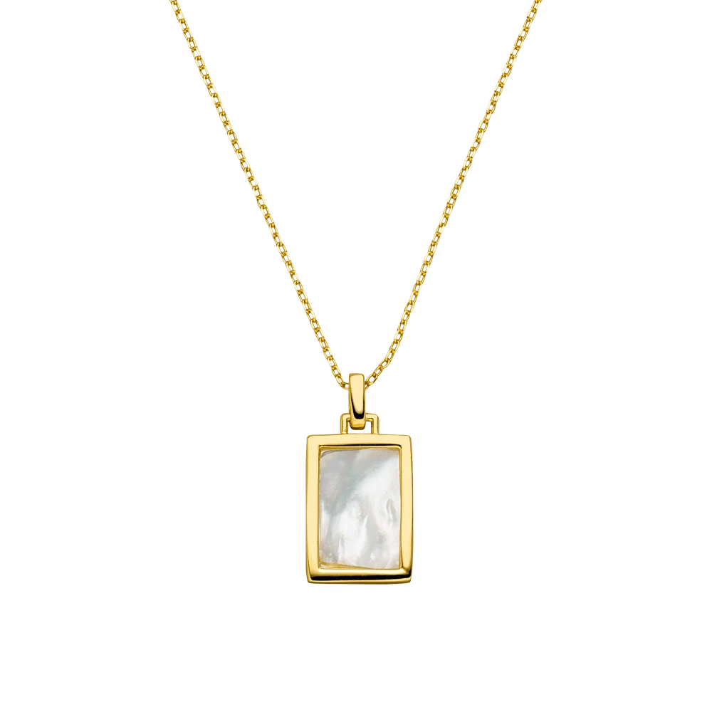 Hübsche Perlmutt-Anhänger Kette aus 925er Sterling Silber mit hochwertiger 18K Vergoldung. Der Anhänger ist vorne und hinten mit wunderschönem Perlmutt gefüllt. Im Sonnenlicht strahlt das Perlmutt in tollen Farben.