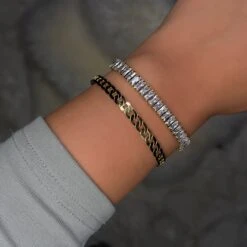 Stylisches Baguette Armband aus Chirurgenstahl, besetzt mit strahlenden Zirkonia-Steinen im Baguette-Schliff. Unser Icy Crystal Armband ist dank der hochwertigen Materialien sowohl wasser- als auch duschfest. Dieses funkelnde Icy Crystal Armband eignet sich hervorragend für den Alltag und zu besonderen Anlässen, aber auch am Business-Outfit punktet es durch Robustheit.