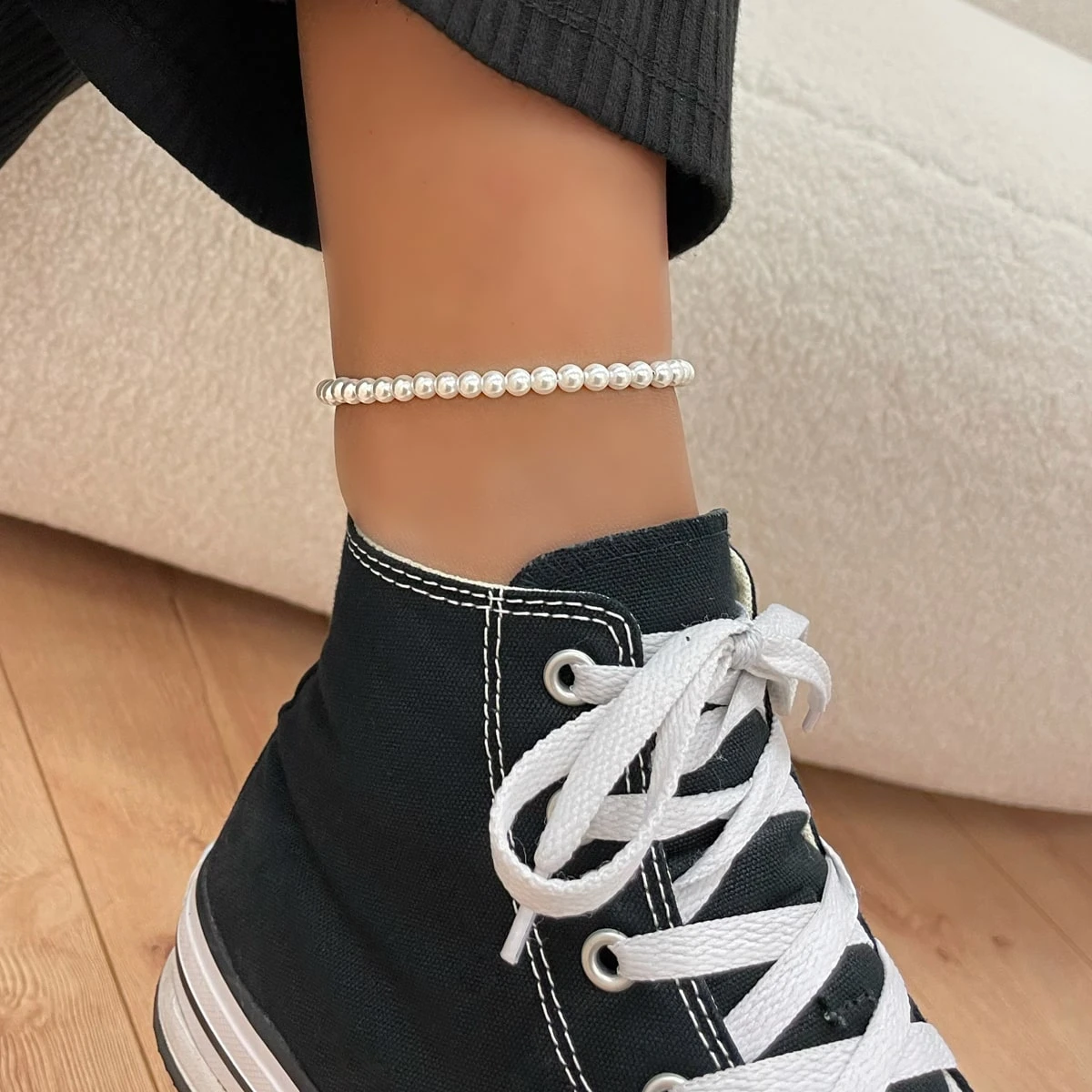 Das wasserfeste Perlenfußkettchen kann solo als einzelner Hingucker oder in Kombination mit weiteren Schmuckstücken getragen werden. Es ist ein Klassiker, der zu jedem Outfit passt und diesem eine elegante Note verleiht.