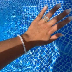 Das Perlenarmband kann solo als einzelner Hingucker oder in Kombination mit weiteren Schmuckstücken getragen werden. Es ist ein Klassiker, der zu jedem Outfit passt und diesem eine elegante Note verleiht.