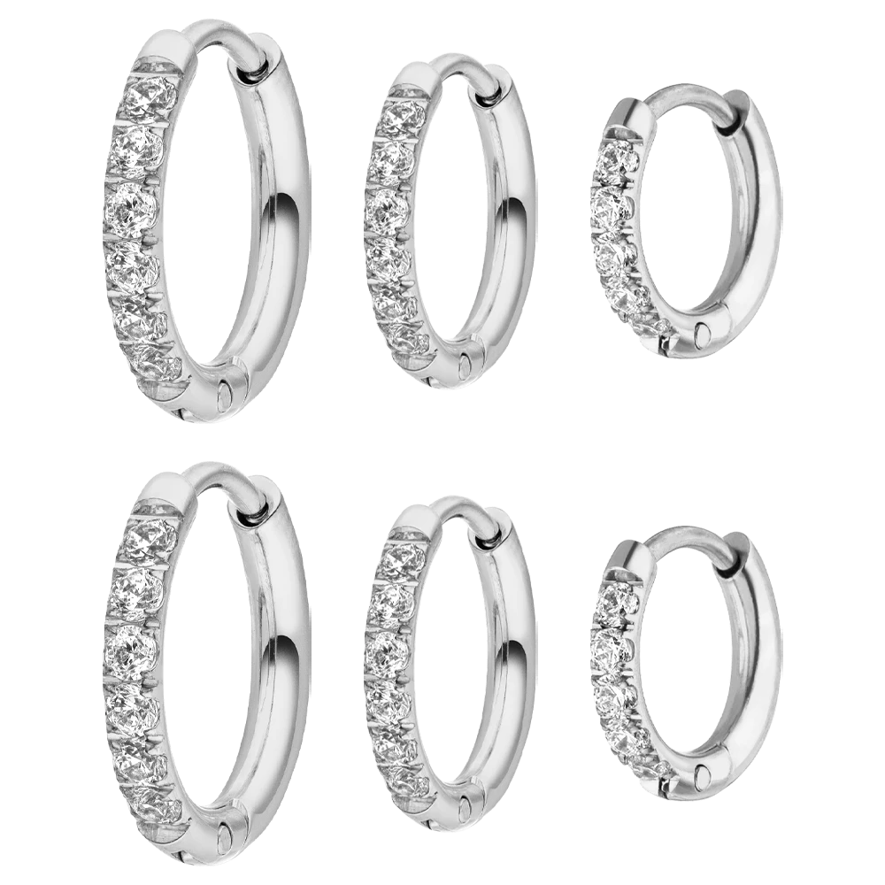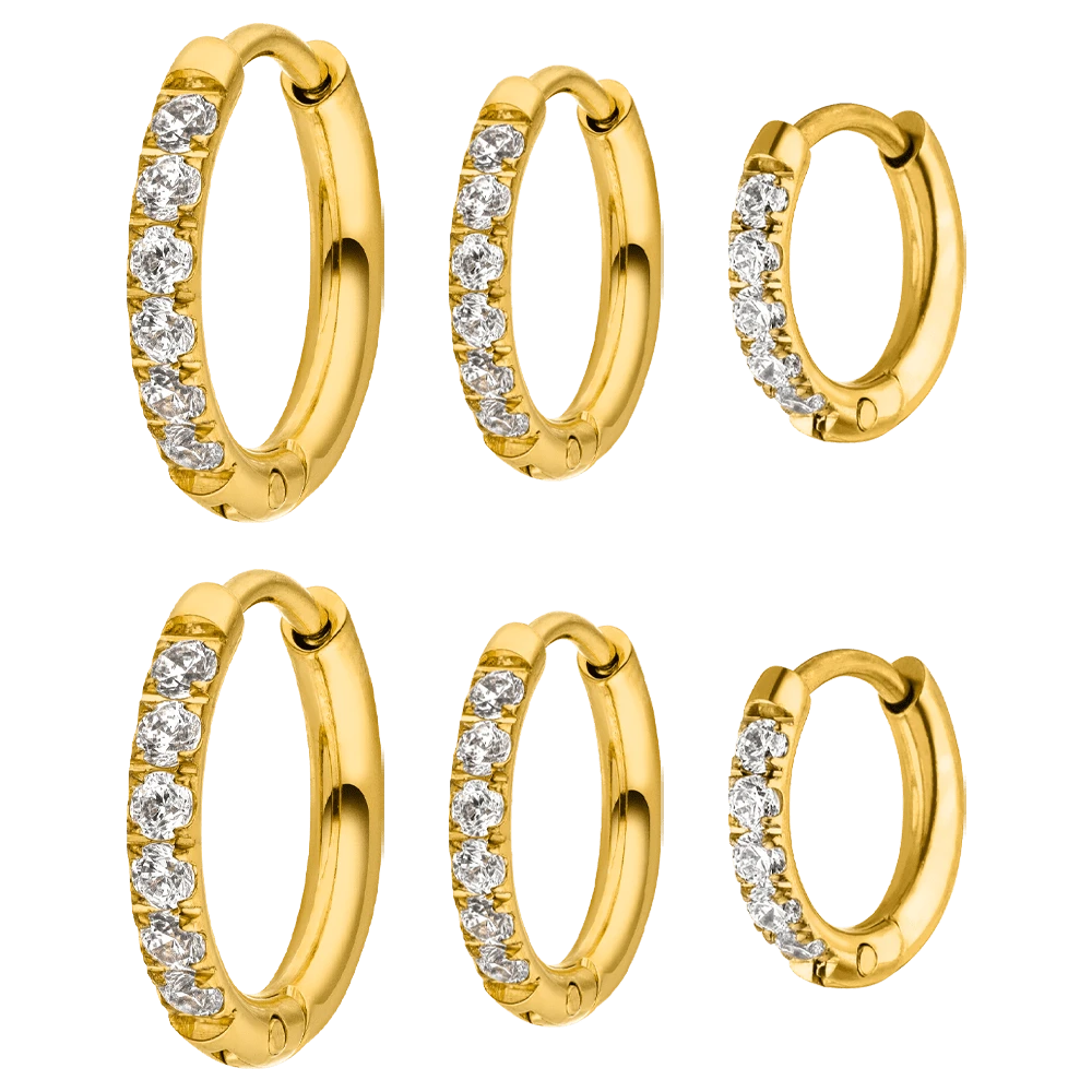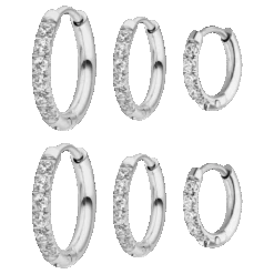Unsere beliebten Klara Ohrringe werden aus Chirurgenstahl gefertigt und sind wasserfest. Diese Ohrringe sind mit funkelnden Zirkonia-Steinen besetzt, die wundervoll funkeln. Diese tollen Ohrringe können in verschiedenen Größen miteinander kombiniert werden, sodass ein abgestufter Ohrlook entsteht.