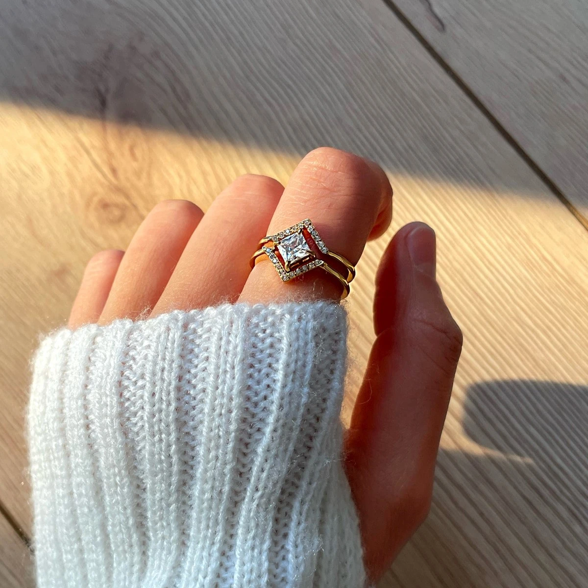 Dieser 2er Larissa Ring kann einzeln oder zusammen im harmonischen Stapel-Look getragen werden. Die schönen Zirkonia-Steine dieses Doppel Ring Sets funkeln im Licht. Beide Ringe ergänzen sich perfekt und mit 18 Karat Gelbgold veredelt.