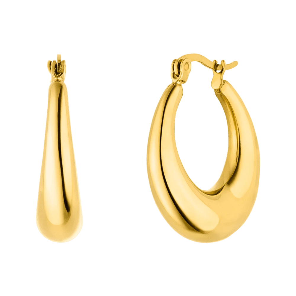 Dezente Ohrringe aus hochwertigem Chirurgenstahl mit 18 Karat Vergoldung. Die Lucia Ohrringe sind in zwei verschiedenen Größen und Farben erhältlich.