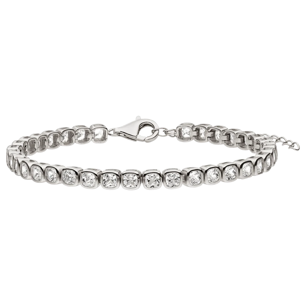 Dieses elegante Armband aus 925er Silber besticht durch seine feine Verarbeitung und funkelnde Zirkonia-Steine in moderner Zargenfassung. Jedes einzelne Element reflektiert das Licht auf edle Weise und verleiht Deinem Handgelenk einen luxuriösen Glanz. Dank der verstellbaren LĂ€nge sitzt das Armband perfekt und passt sich jeder TrĂ€gerin an. Ideal als stilvolles Accessoire fĂŒr besondere AnlĂ€sse oder als hochwertiges Geschenk.