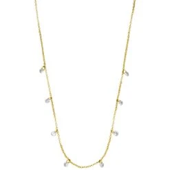 Diese wundervolle Lynda Kette ist mit acht hübschen Zirkonia Anhängern im trendigen Brillantschliff bestückt. Die Halskette wird aus besonders hautfreundlichem Chirurgenstahl gefertigt und mit 18 Karat Gelbgold vergoldet bzw. Hochglanz poliert. Sie ist wasserfest und beständig, also der perfekte Alltags-Begleiter.