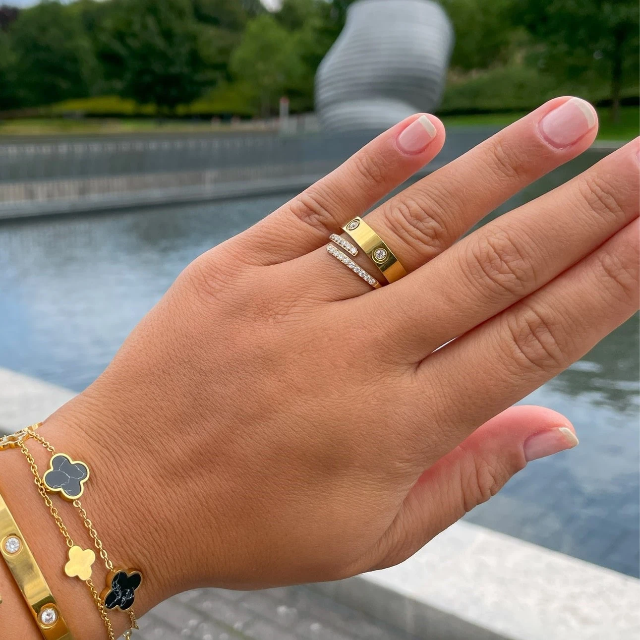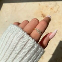 Dieser classy Ring ist mit funkelnden Zirkonia Steinchen auf beiden Seiten jeweils bis zur Hälfte besetzt. Der Mayla Ring sorgt als eleganter Alltags-Begleiter für ein schönes Tragegefühl. Shine bright like a 💎.