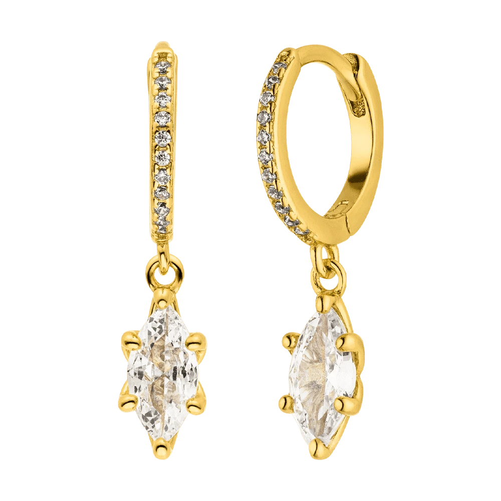 Diese eleganten Ohrringe aus 925er Silber mit hochwertiger Vergoldung oder Rhodinierung verzaubern mit einem funkelnden Marquise-förmigen Stein. Feine kleine Steine entlang der Creolen sorgen für strahlende Highlights bei jeder Bewegung. Ein femininer Look, der Deine Ausstrahlung stilvoll unterstreicht.