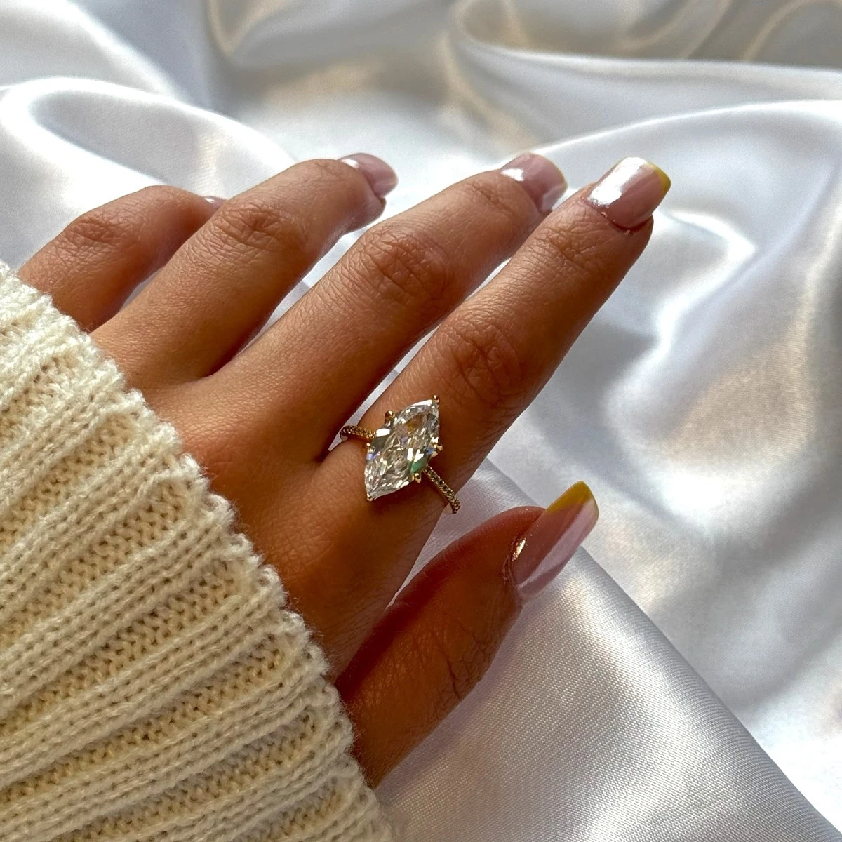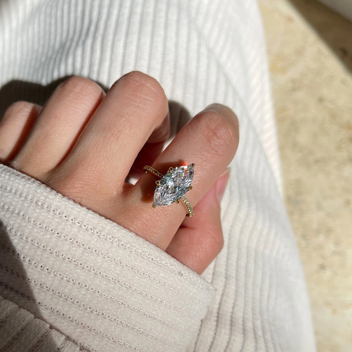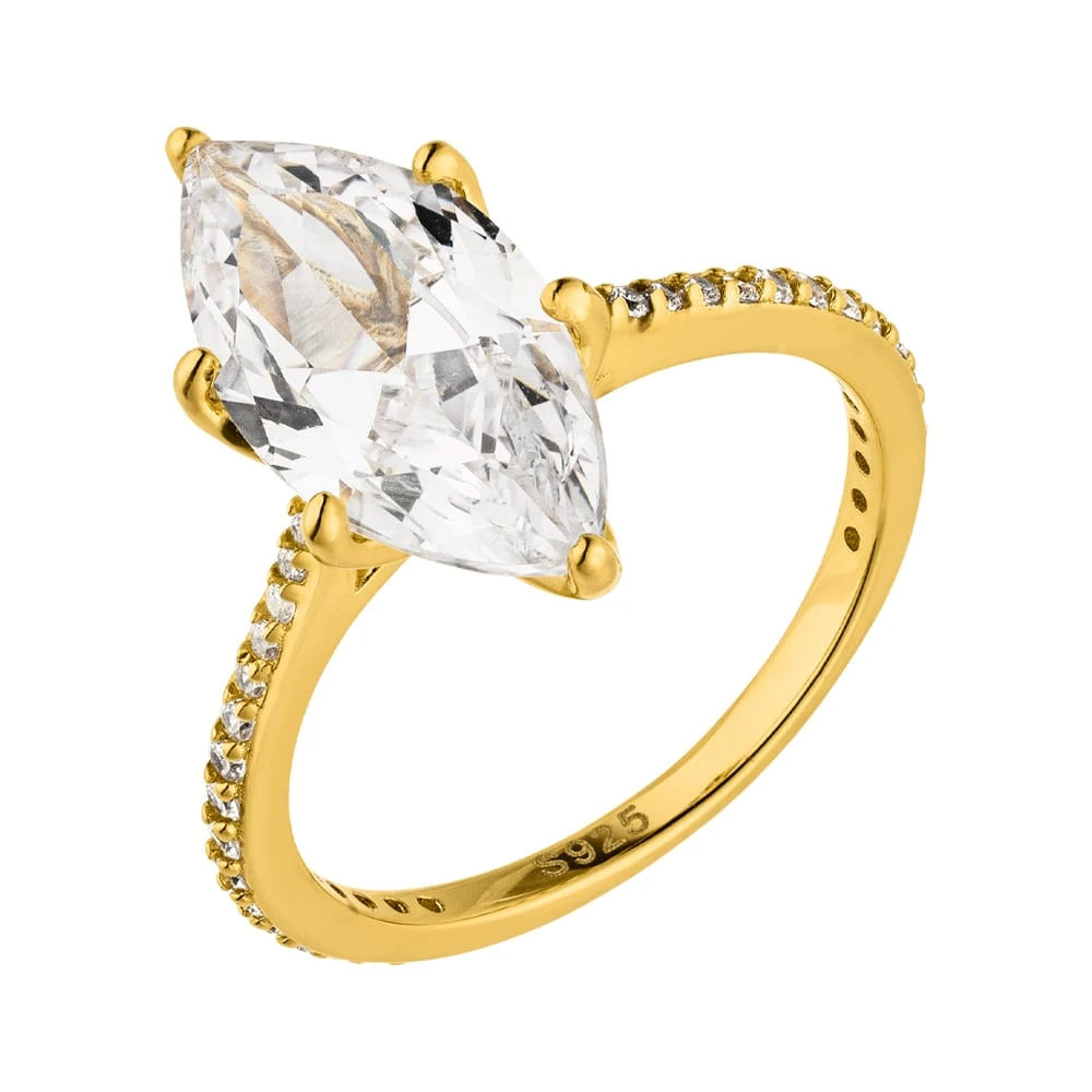Dieser Marquise-Ring lässt Herzen höherschlagen: Strahlendes 925er Silber, vergoldet bzw. rhodiniert und gekrönt von einem funkelnden Marquise-Förmigen Stein. Zarte Steinchen an der Ringschiene verleihen ihm eine besondere Ausstrahlung, die jedes Outfit veredelt. Ein Schmuckstück, das pure Eleganz und große Gefühle vereint.
