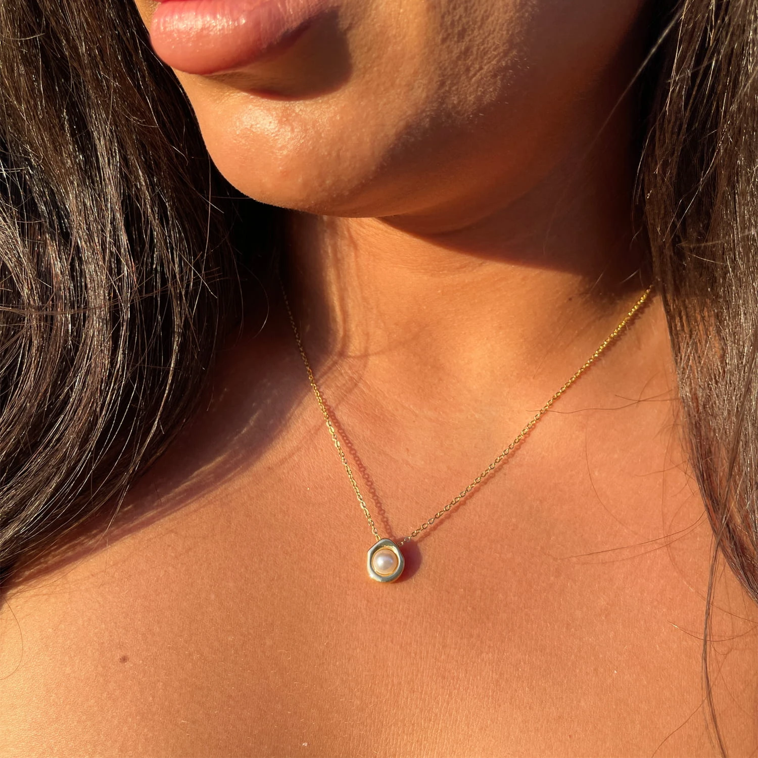Die klassisch-elegante Nina Halskette zieht die Blicke auf sich, dank des Perlen-Anhängers. Diese Perlenkette wird aus beständigem Edelstahl gefertigt und ist wasserfest. Perlen Schmuck erfährt aktuell einen Comeback.