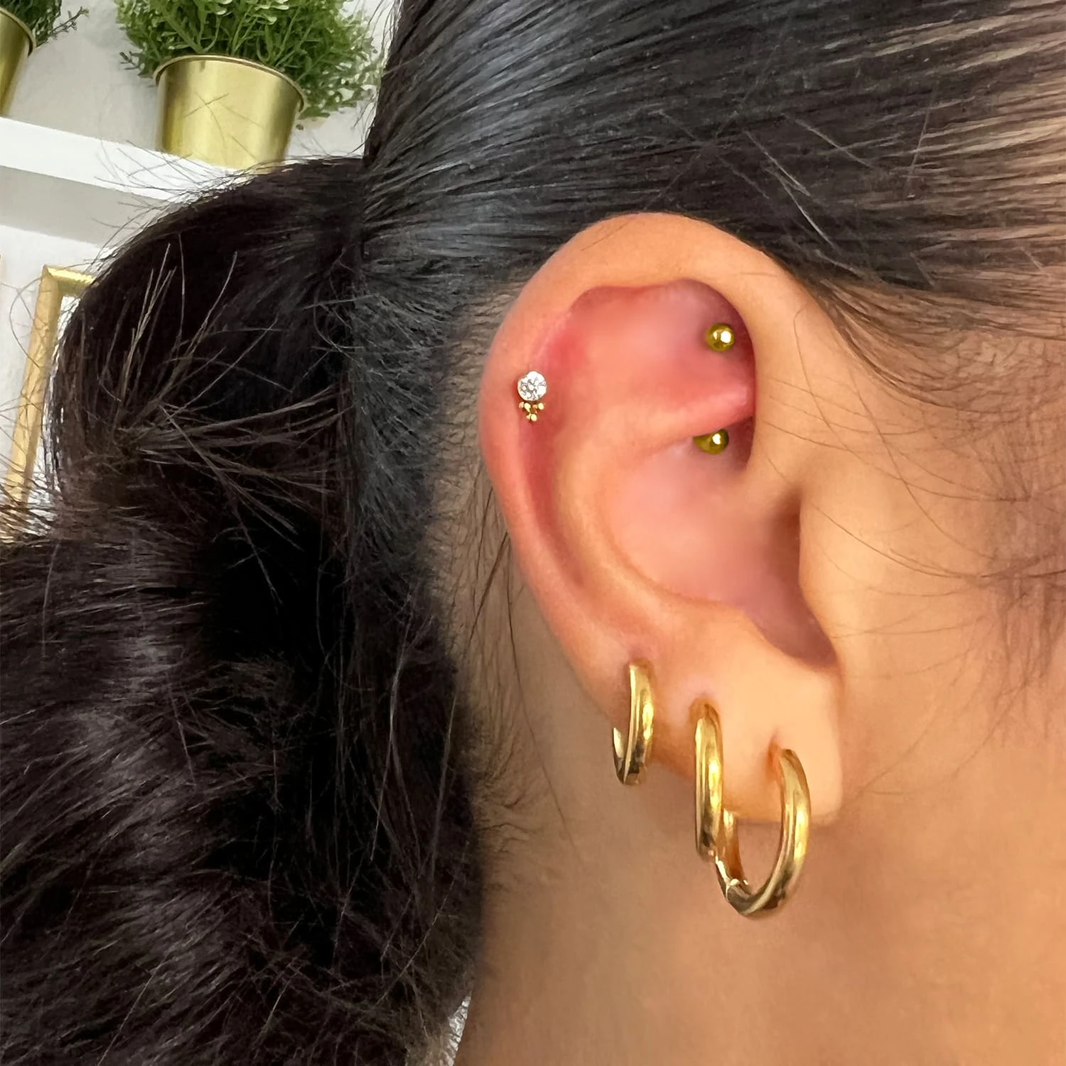 - Verwendung: Piercing, Tragus, Lobe, Conch oder Helix