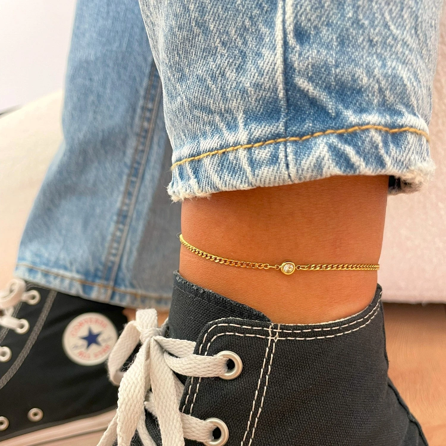 Trendige Gourmet Fußkette aus hochwertigem Edelstahl, die für Hingucker sorgt. Unsere One Stone Fußkette ist wasserfest und beständig, also perfekt geeignet für den Urlaub oder auch im Alltag. Dieser Eye-Catcher schmiegt sich Deinem Fußgelenk an.