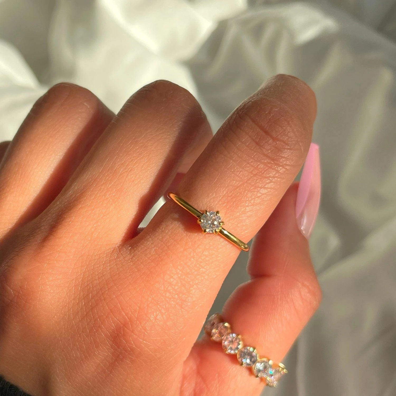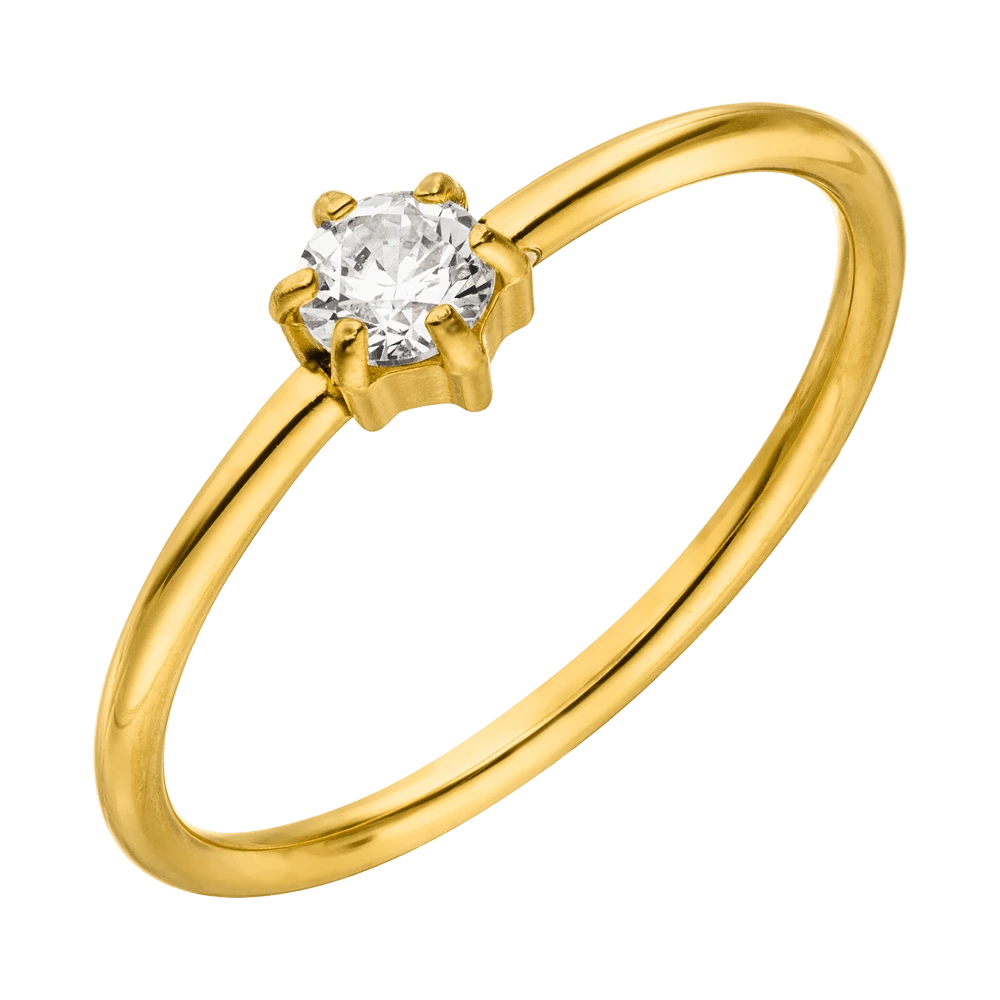 Dieser klassisch-elegante SolitÀr Ring darf in keiner Schmuck Sammlung fehlen. Er kann perfekt kombiniert werden oder auch alleine getragen werden. Durch den rundum funkelnden Stein im Brilliant-Schliff wird das Sonnenlicht besonders gut eingefangen. Der One Stone Ring krönt Deine Hand zum Hingucker!