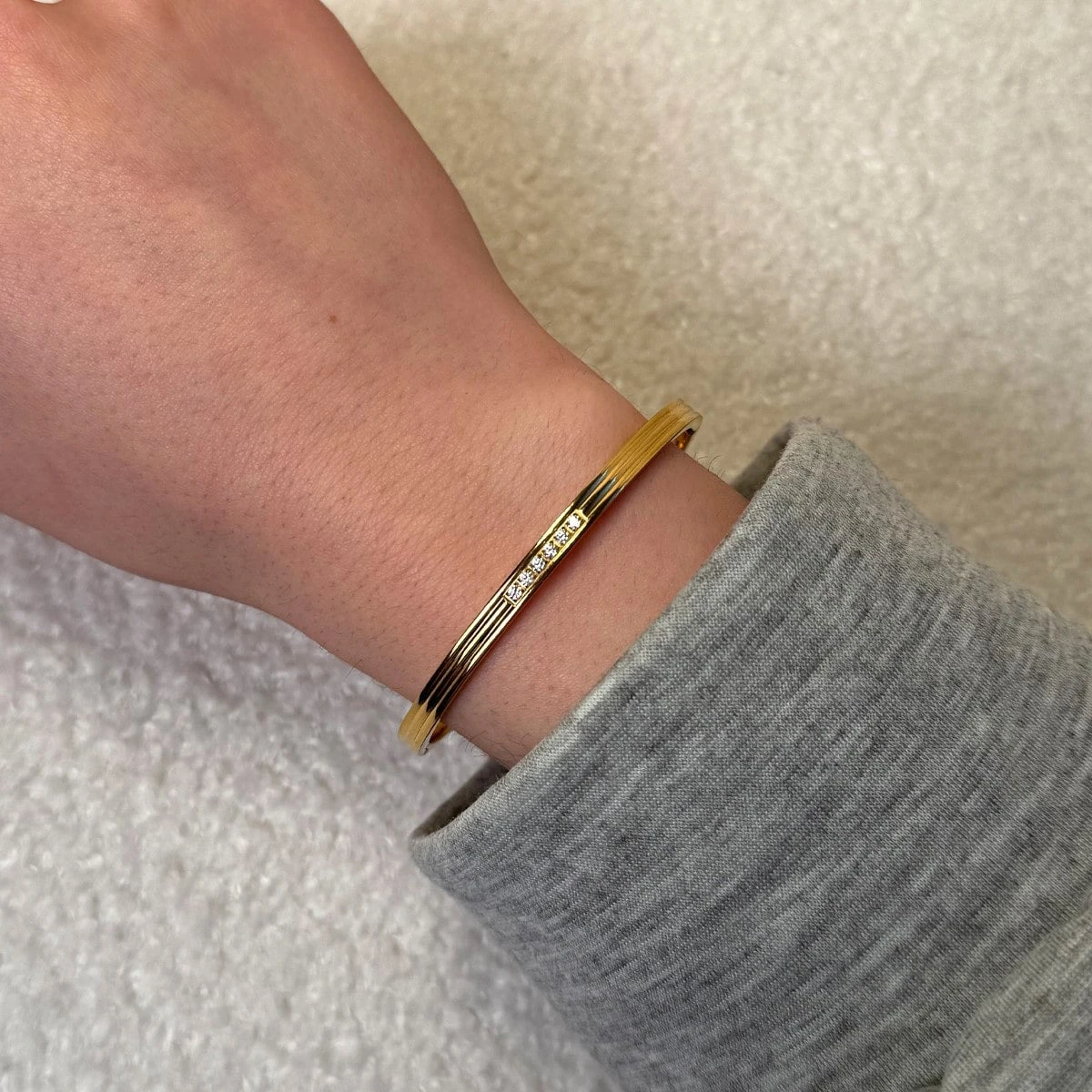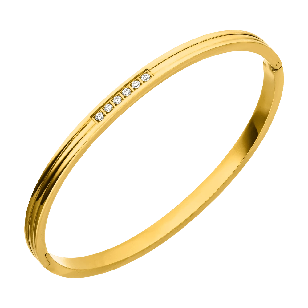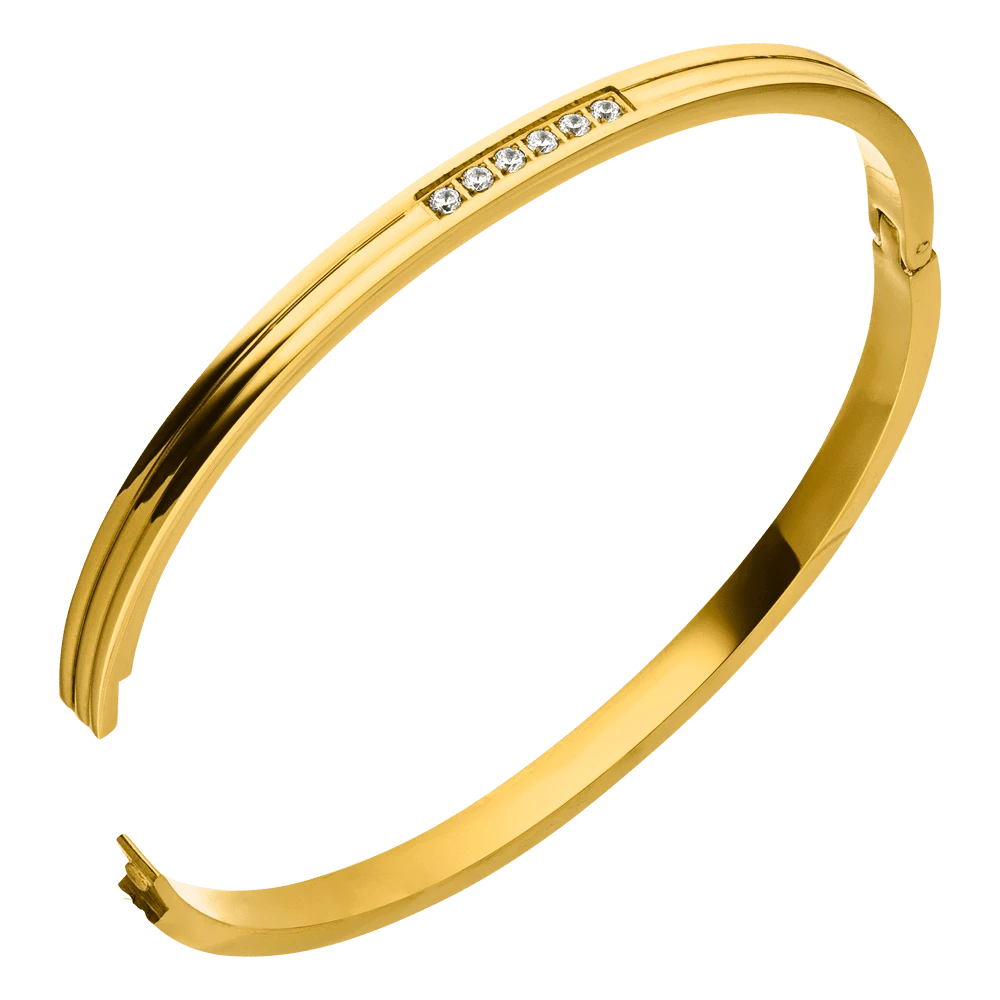 Dieser elegante Armreif ist ein echter Hingucker und darf in keiner Schmuck-Sammlung fehlen. Die sieben funkelnden Steinchen sorgen fĂĽr einen eindrucksvollen Auftritt.