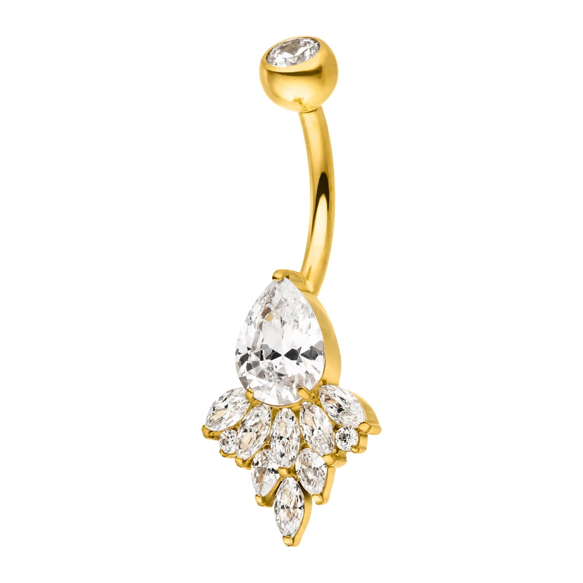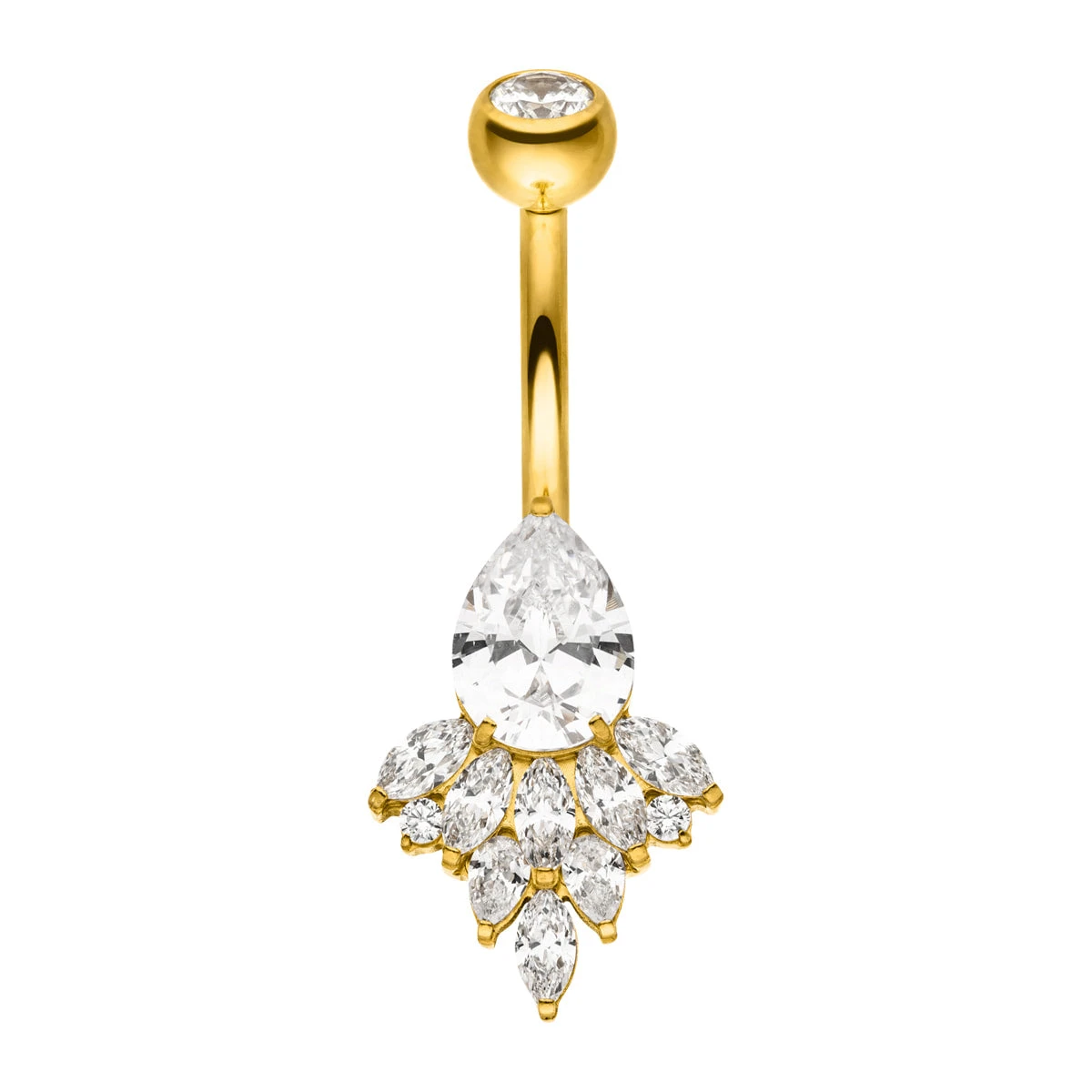 Dieses stylische Nabelpiercing ist aus Titan und mit 18K Vergoldung versehen und das Beste: Es ist sogar anti-allergisch! (Genieße ein Tragen, ganz ohne Jucken).