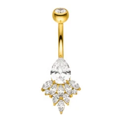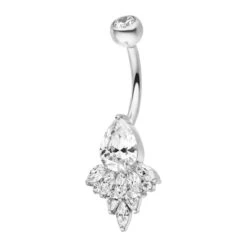 Zeig Deine einzigartige und eindrucksvolle Ausstrahlung mit dem Oriental Belly Bauchnabel Piercing aus Titan! Die atemberaubenden funkelnden Zirkonia Steine sorgen für ein besonderes Detail.