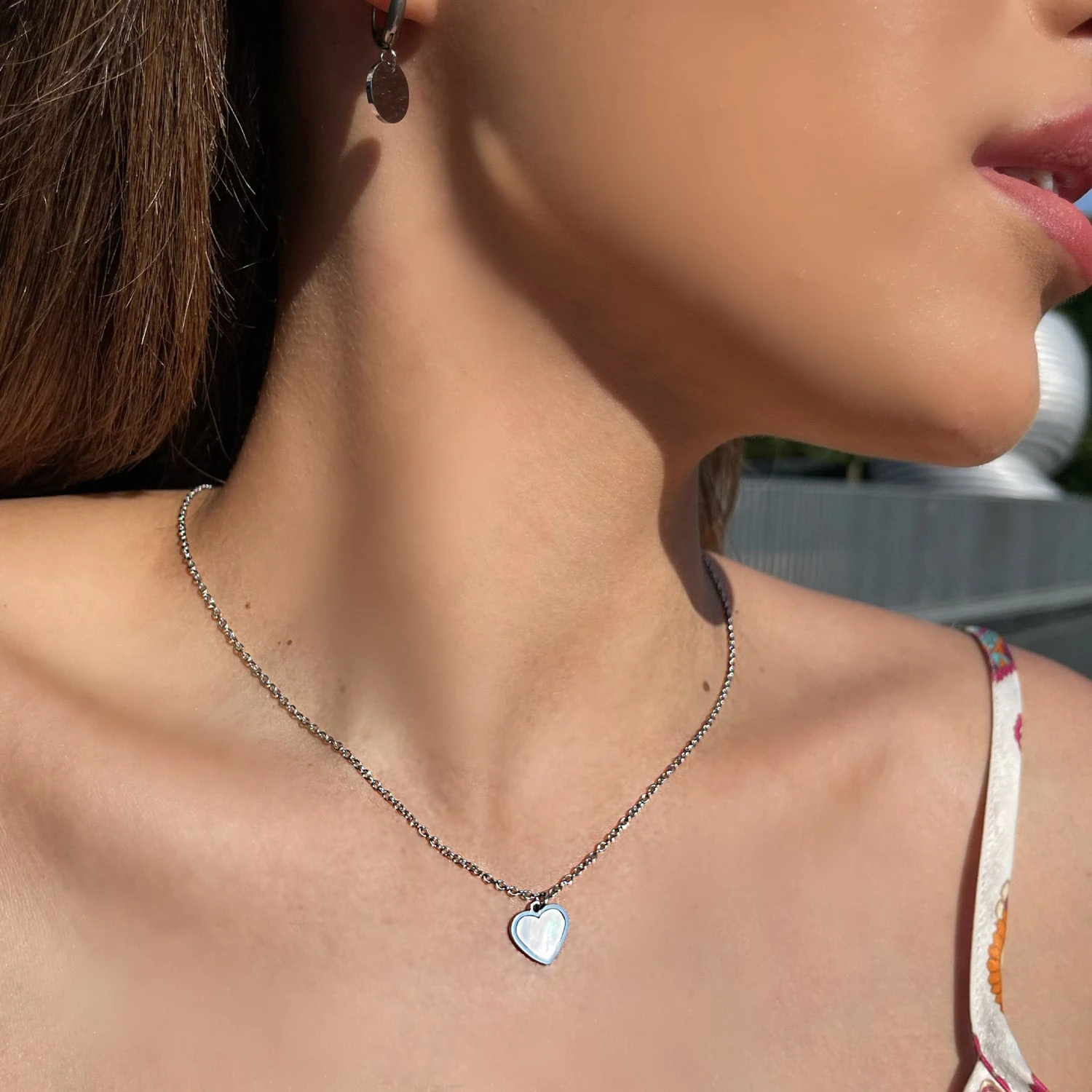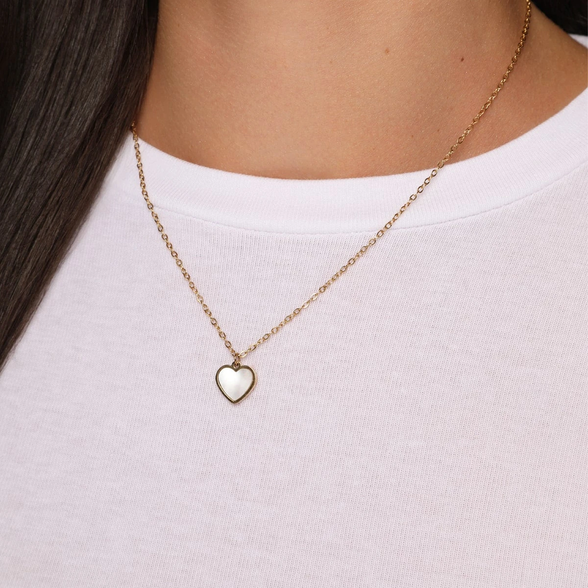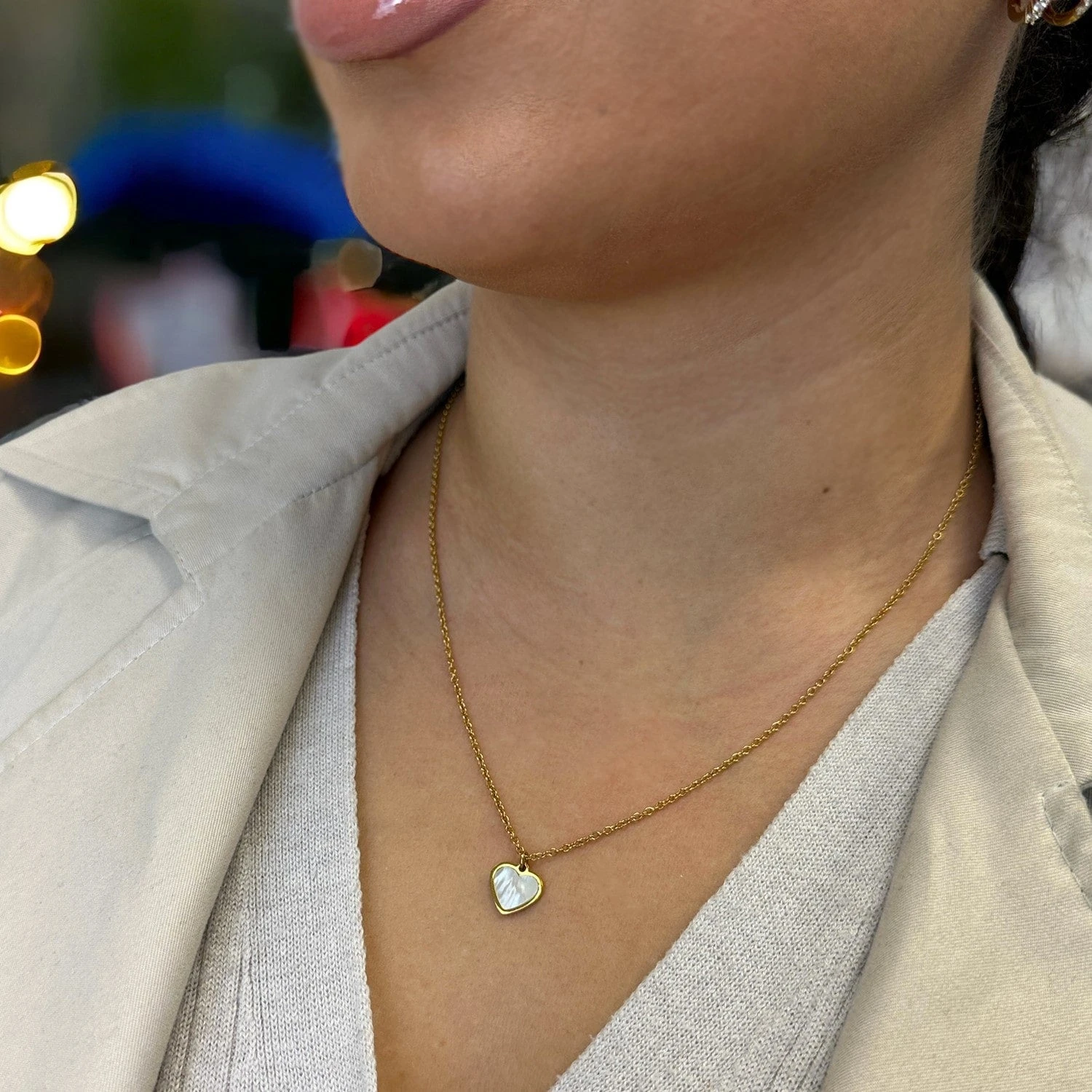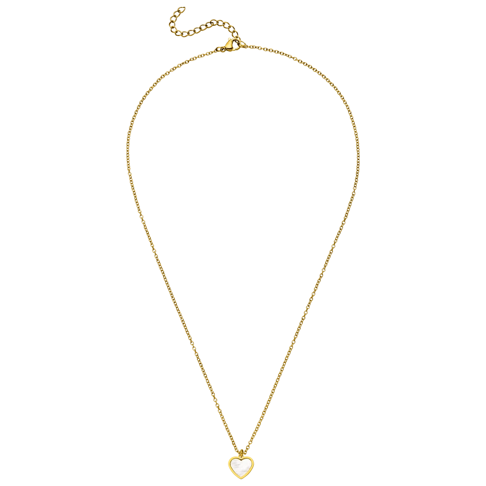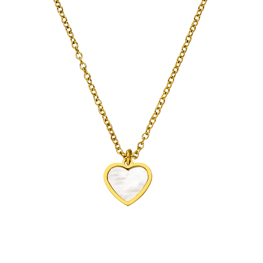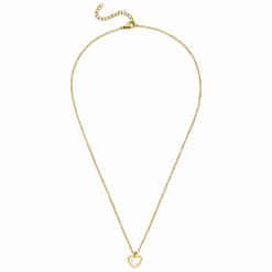 Filigrane Halskette mit einem Herz-Anhänger gefüllt mit Perlmutt. Diese schöne Herzchen Halskette strahlt im Licht durch das Perlmutt in tollen Farben. Dank des beständigen Edelstahls und der hochwertigen Vergoldung, ist die Halskette wasser- und duschfest.