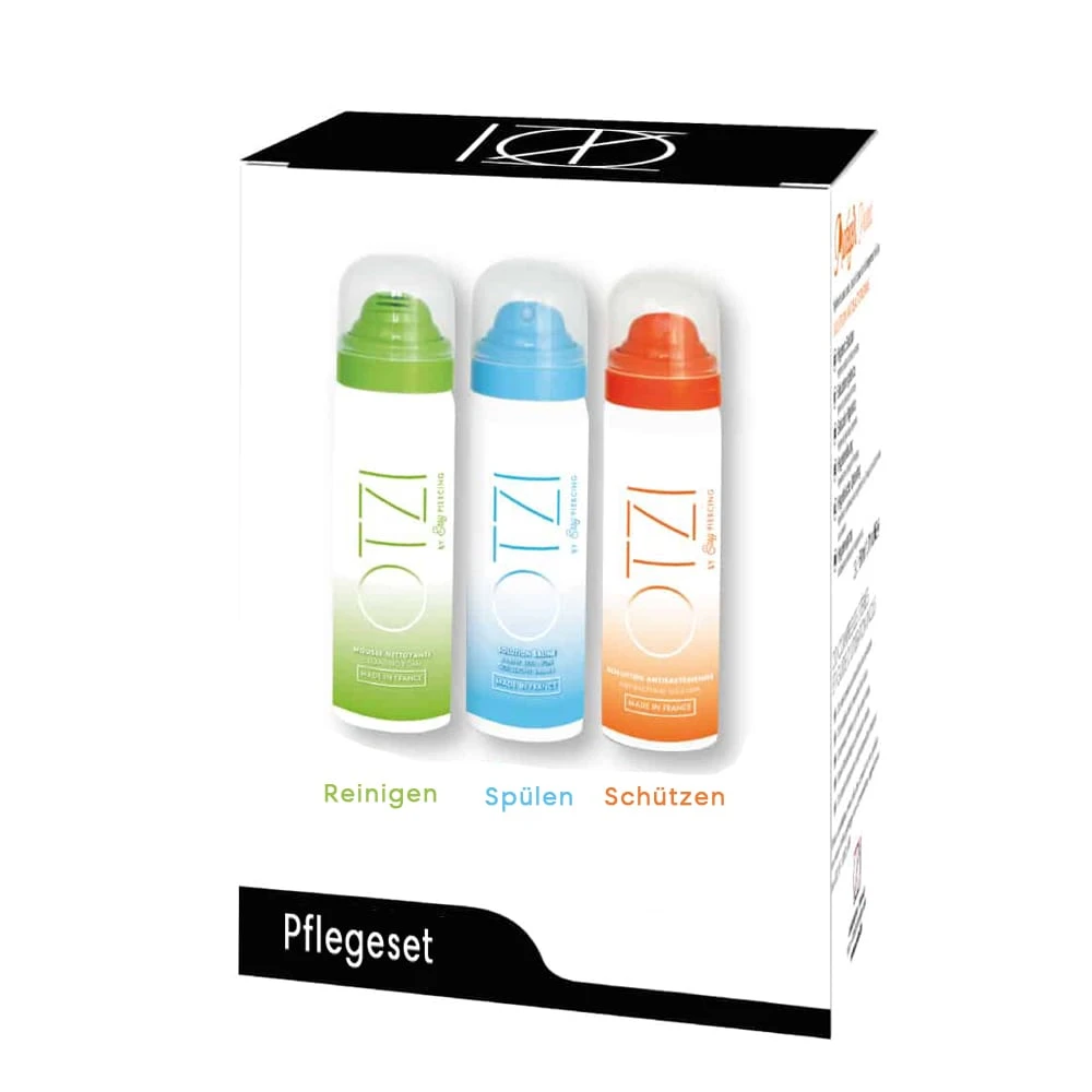 Das Nachsorge Set vereint drei hochwertige Produkte für die optimale Pflege Deines Piercings: den Reinigungsschaum, die Kochsalzlösung und die Hygienische Lösung. Gemeinsam reinigen, spülen, befeuchten und pflegen sie die Haut rund um das Piercing – für eine rundum effektive und sanfte Nachsorge.